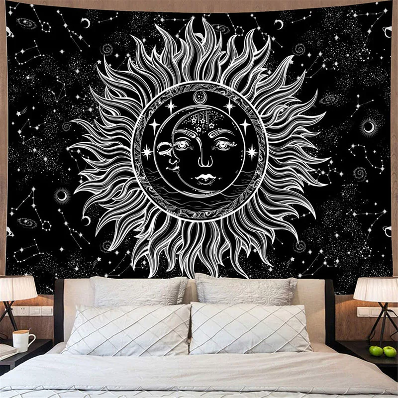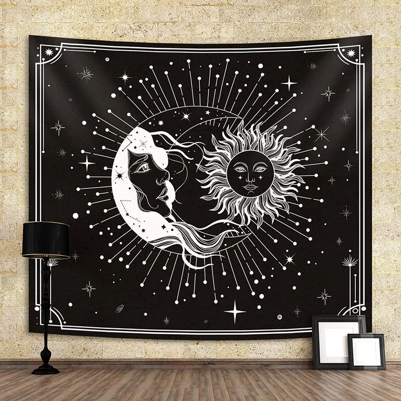 Отзывы о Гобелен с мандалой белый черный солнце и луна Трот Настенная подвеска звездное