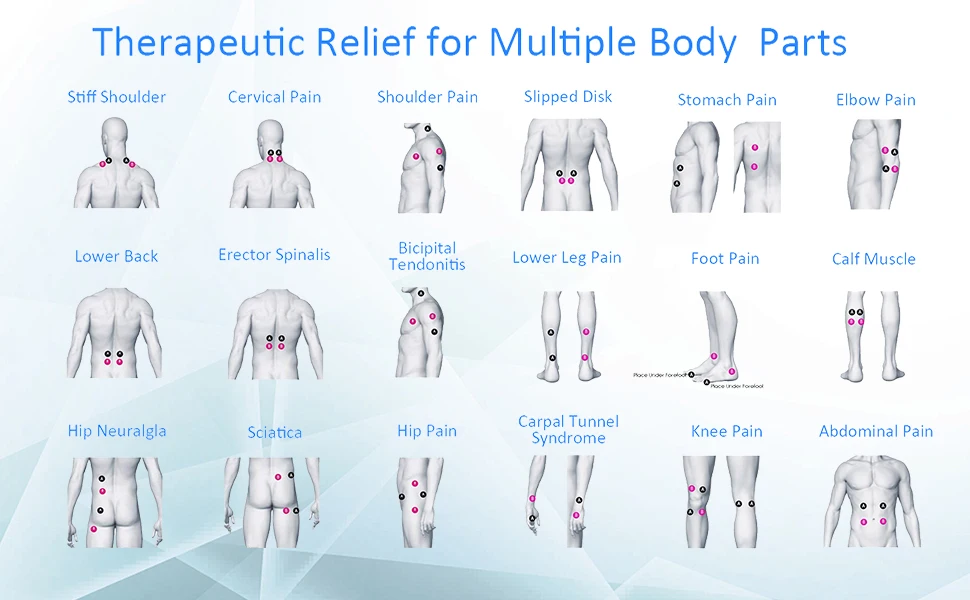 Блок tens обеспечивает низковольтные импульсы для кожи для стимуляции мышц, помогает уменьшить ощущение физической боли, такой как радикулит, артритные или воспаленные диски/суставы, твердые плечи, ноги, облегчение боли в мышцах спины, избавление от хронической боли и восстановления стресса и боли в теле, чтобы быть более здоровым и энергичным.