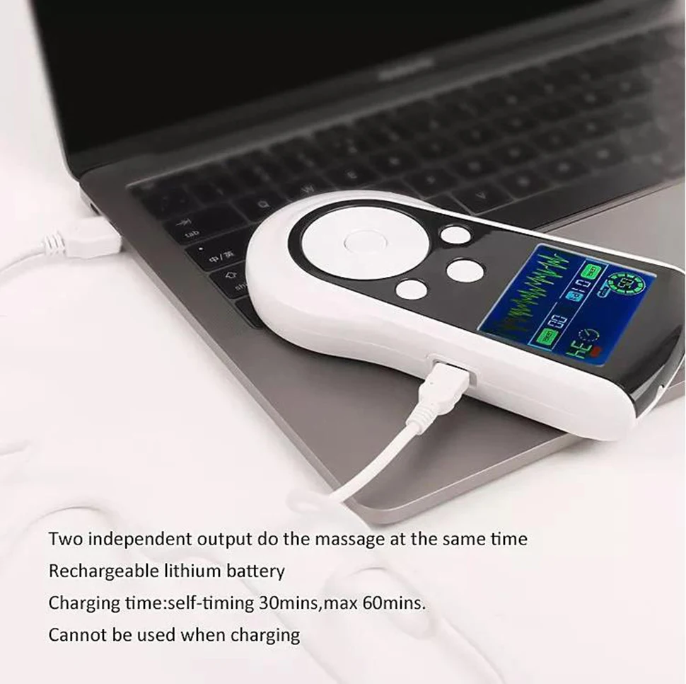 1. Этот товар заряжается от USB. Адаптер для этого устройства отсутствует. 2. Прежде чем регулировать интенсивность, поместите электроды на кожу.