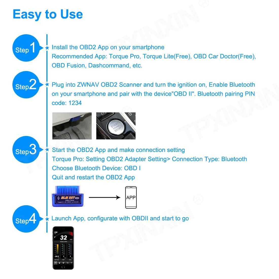 • Работает со всеми совместимыми с OBD-II транспортными средствами