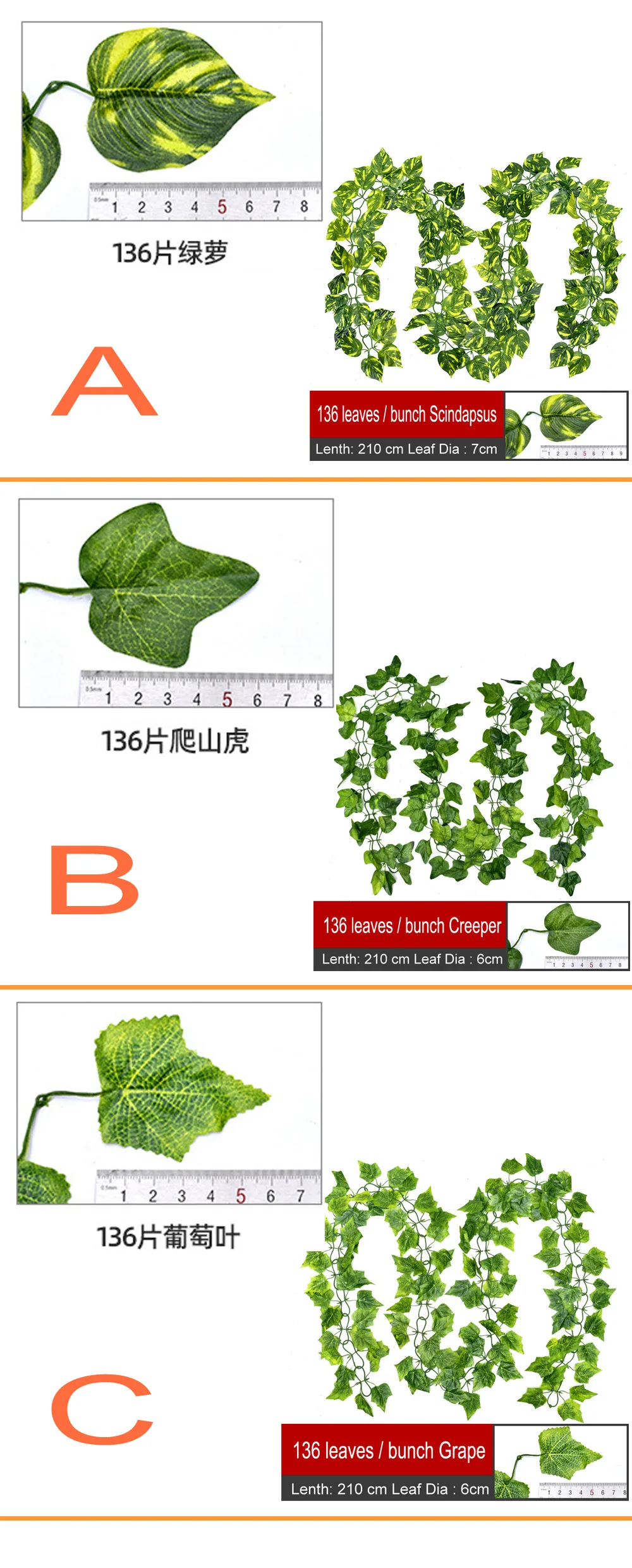 🌺Посылка включает в себя: 3 шт. искусственная гирлянда из листьев плюща растения
