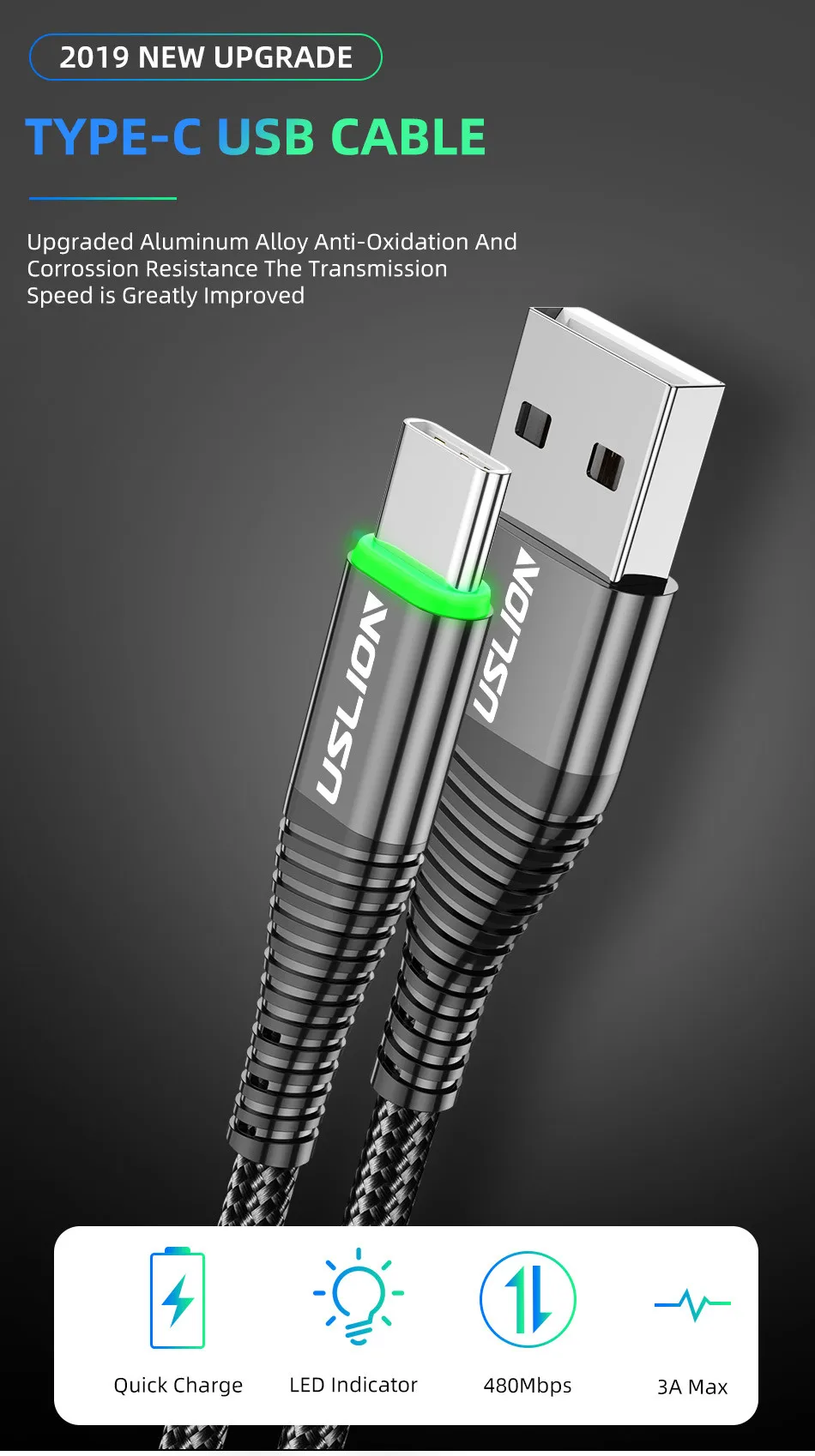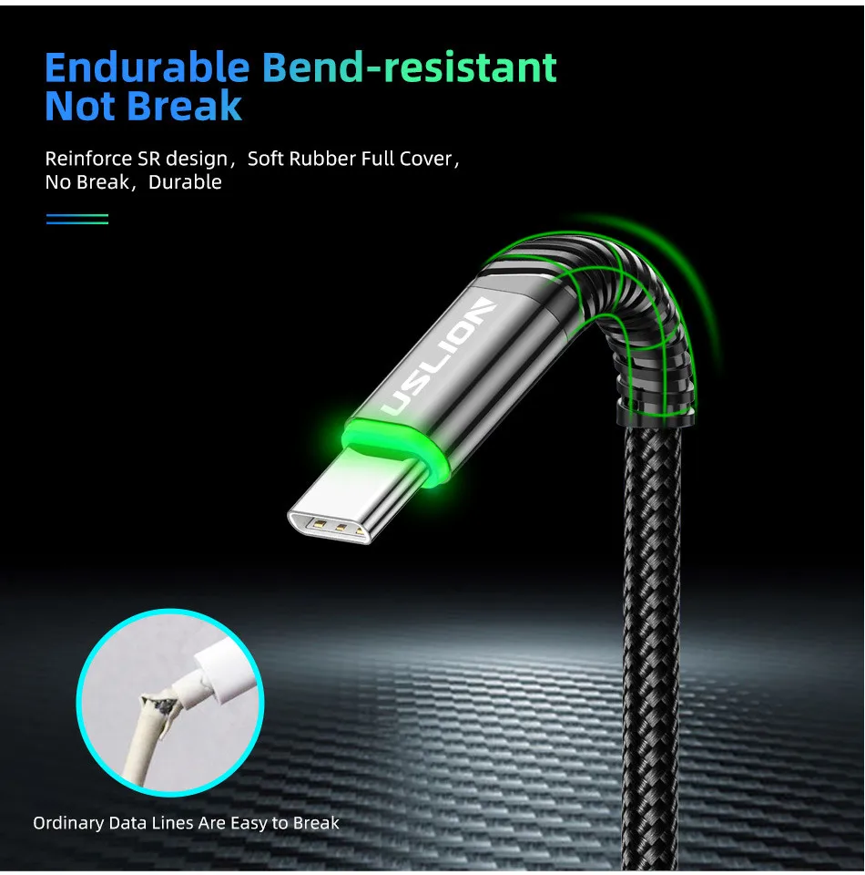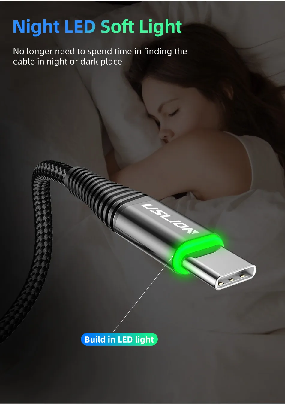 Отзывы о Кабель USB Type-C USLION 0 5 м/1 м/2 м светодиодный 3 А кабель для быстрой зарядки и передачи