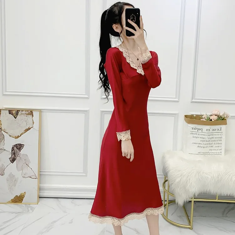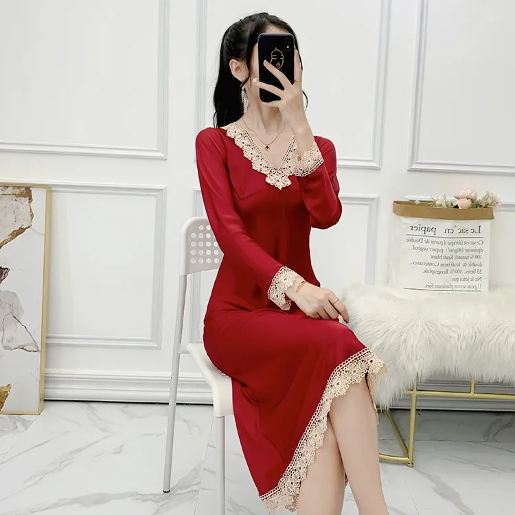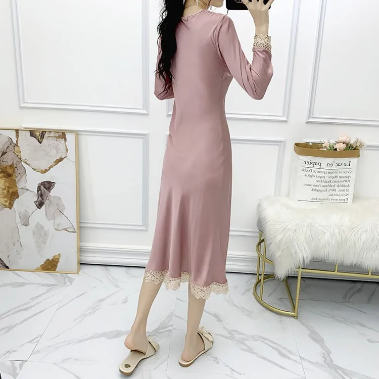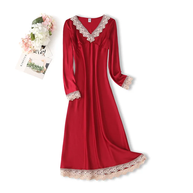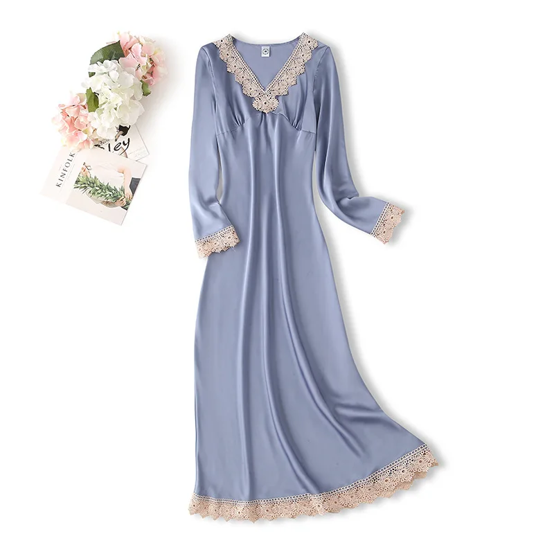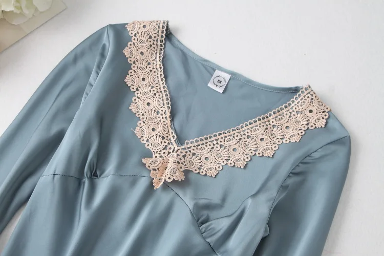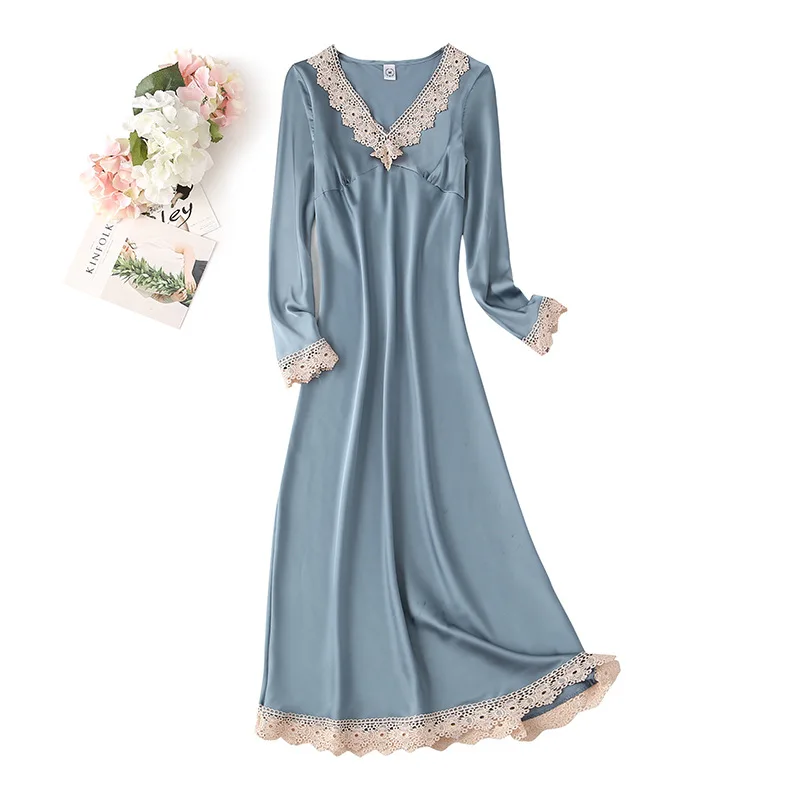 Отзывы о Женская ночная сорочка с V-образным вырезом длинным рукавом и кружевной отделкой