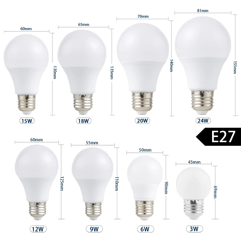 E27-3W/ 6 Вт/7 Вт/9 Вт/12 Вт/15 Вт/18 Вт/20 Вт/24 Вт