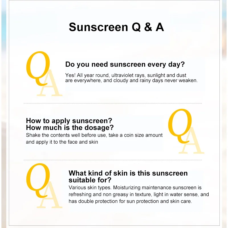 Product efficacy: long-lasting sun protection, refreshing and moisturizing, isolation of external impurities