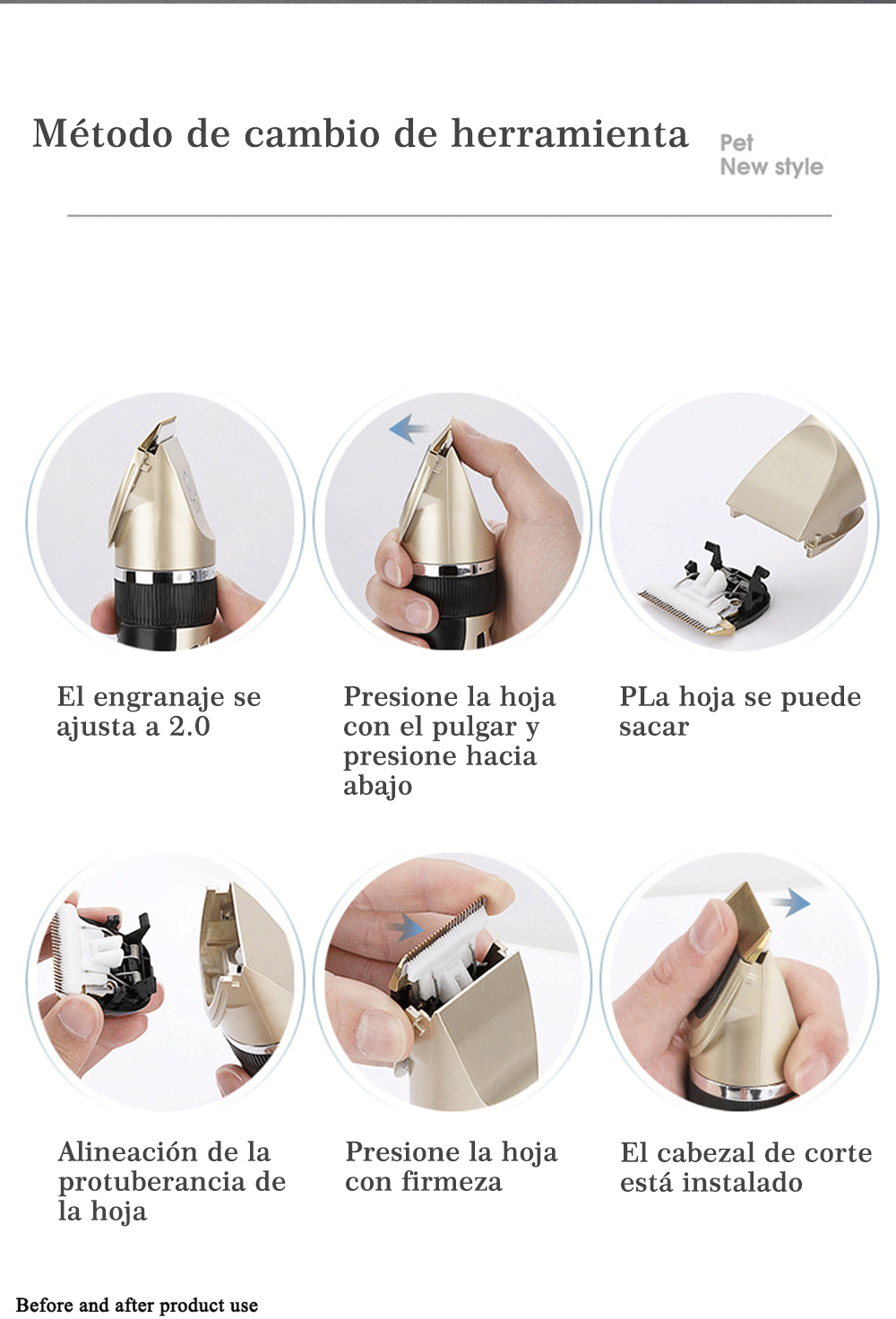 Pente de corte ajustamel-com 4 pentes de guia de fixaçao (3 мм/6 мм/9 мм/12 мм) para ajustar a lâmina quando você precisa controlar o comprimento do cabelo. Perfeito para cães ou gatos grandes, médios e pequenos, torna-los seguros, fаceis e confortаveis.