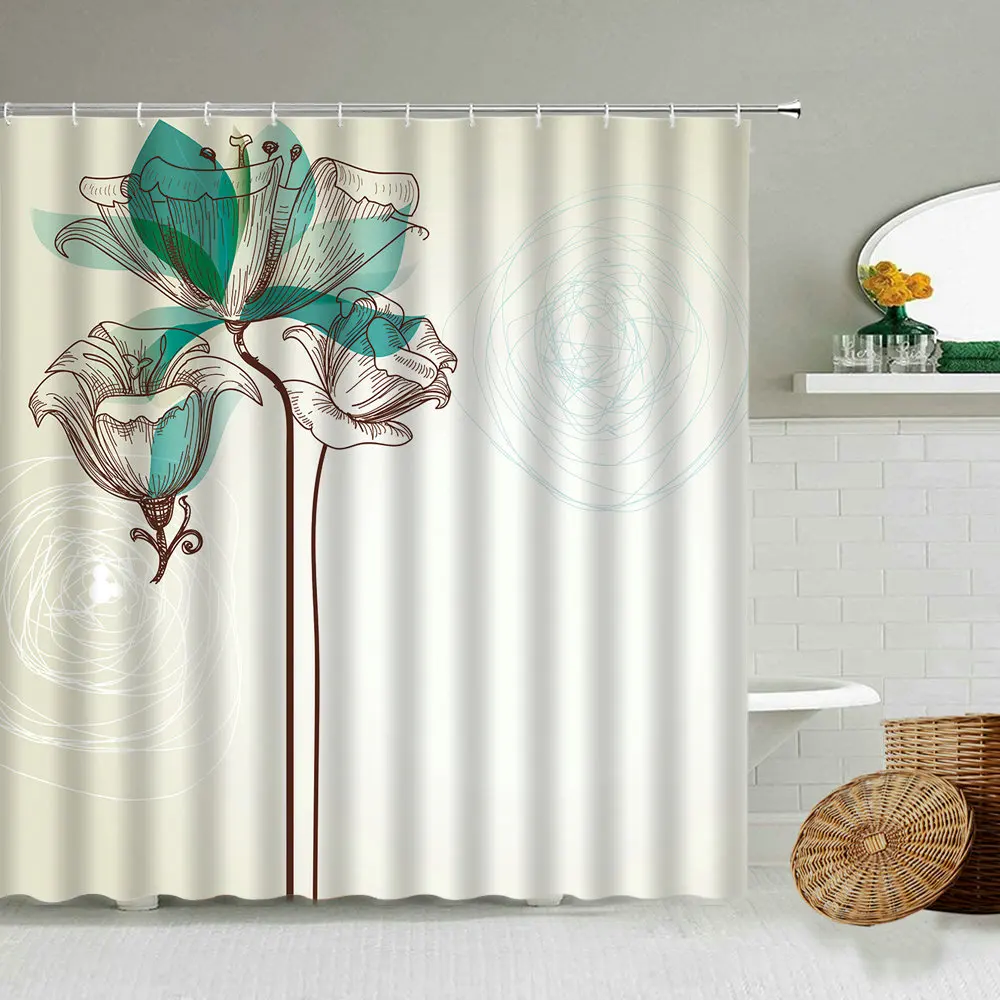 Отзывы о Занавеска для душа с ручной росписью цветочным принтом лотос абстрактный