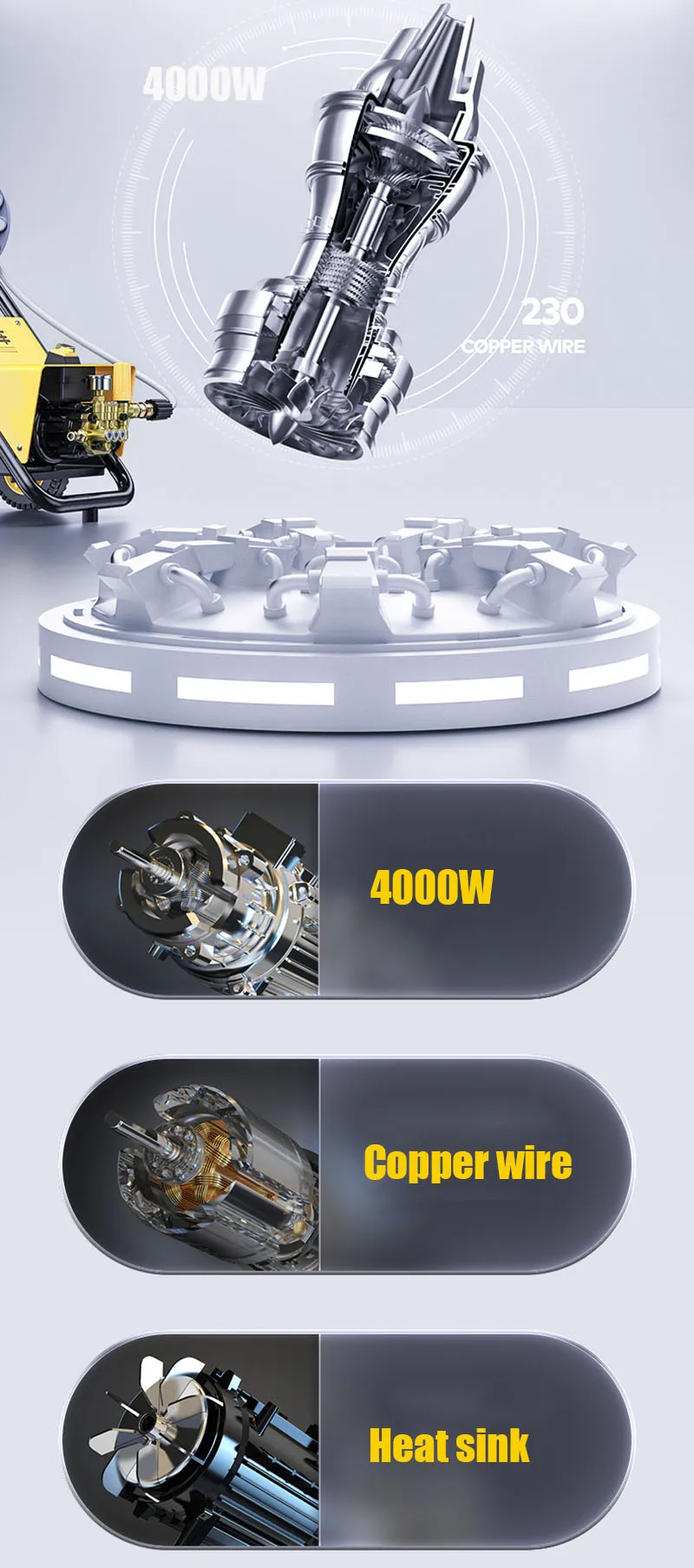 1. Двигатель этой машины является бесщеточным Индукционным двигателем из чистой меди, который является более экологически чистым.