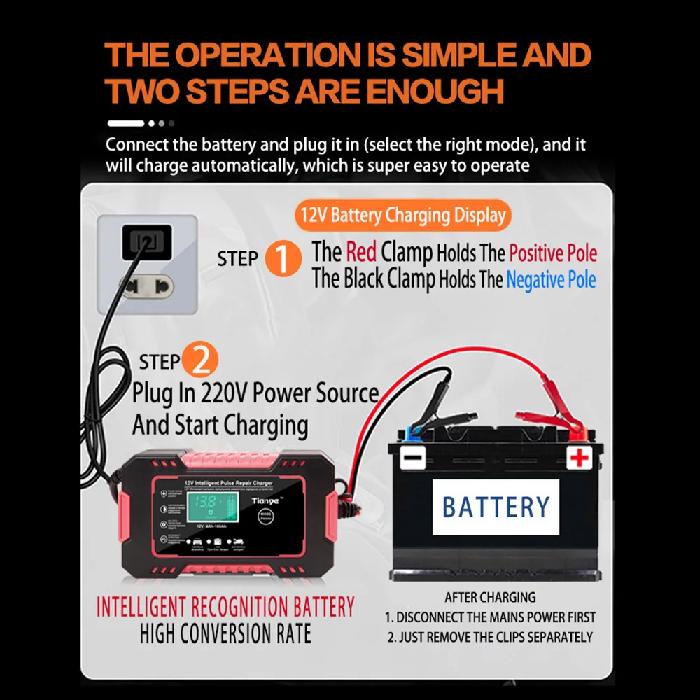 - Зарядные устройства подходят для большинства типов аккумуляторов, включая кальций, гель и AGM, влажные батареи. Они также могут помочь восстановить сливные и сульфированные батареи.