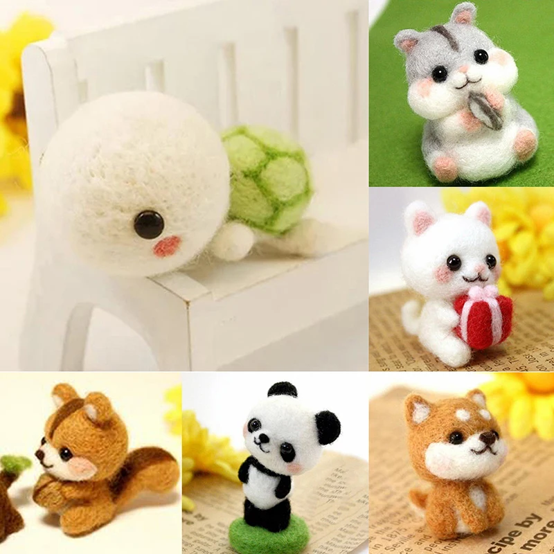 Отзывы о Non-Finished Felt Kit Cute Animal Collection Panda Squirrel Cat Penguin Doll Wool Poked Kitting DIY Felting Materials | Дом и сад