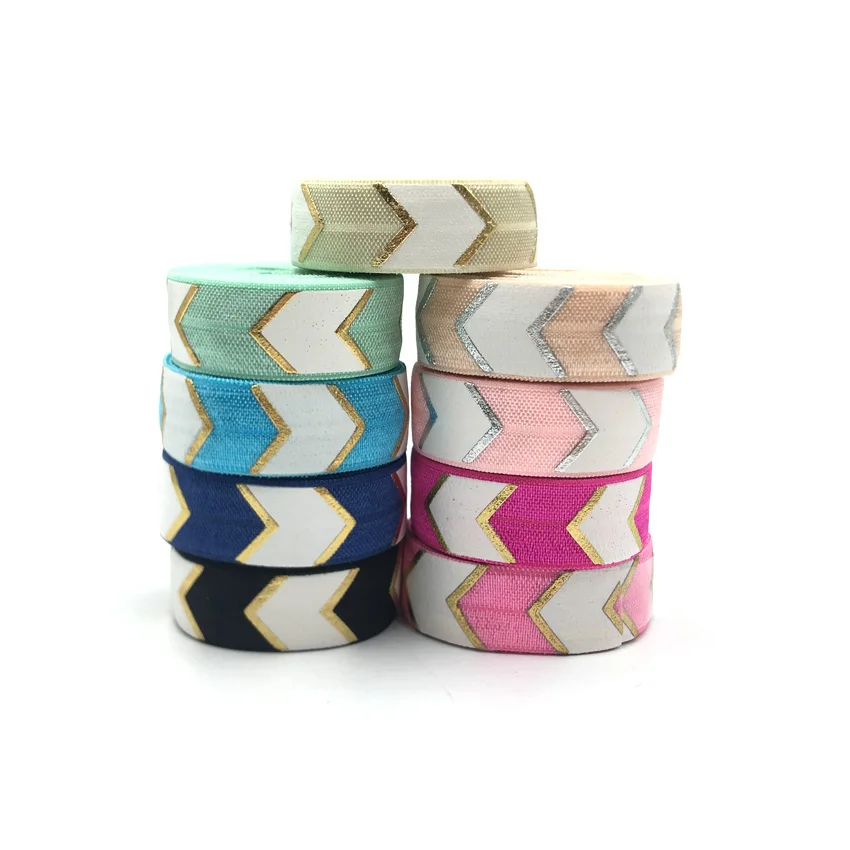 5 ярдов 5/8 "16 мм белая Золотая стрелка из фольги шеврон печатные складные эластичные ленты DIY ремешок для волос Швейные аксессуары