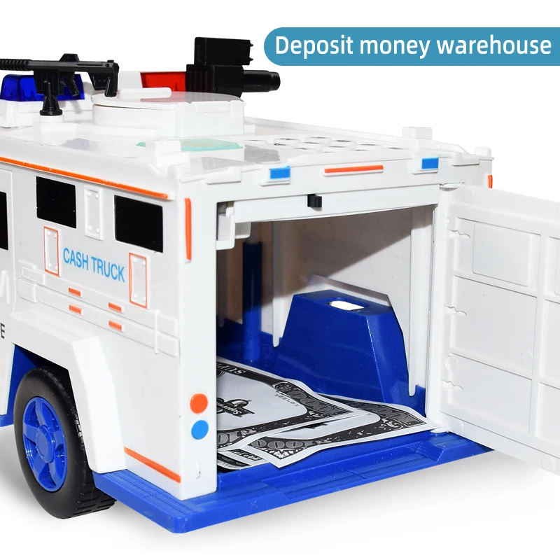 This product is a toy car that can save money and transport money, electric storage, fingerprint password unlocking, and simulation sound quality special effects.