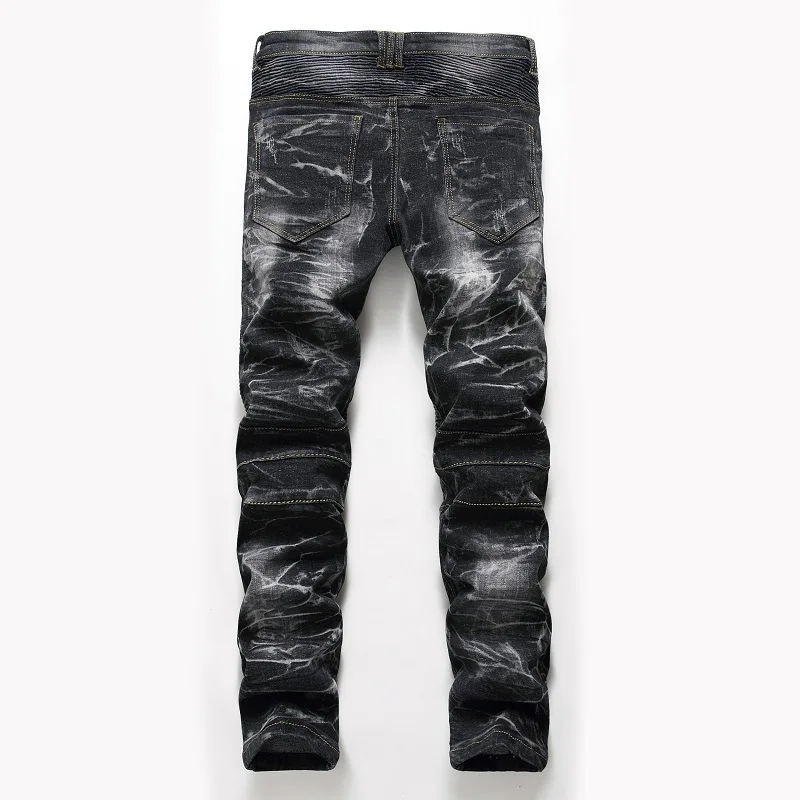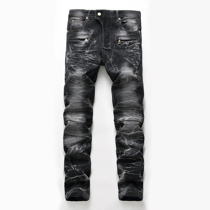 2021Высокое качество Мужские повседневные джинсы с покрытием тонкие прямые плиссированные джинсы для байкеров мужские джинсовые повседневные брюки размера плюс 42