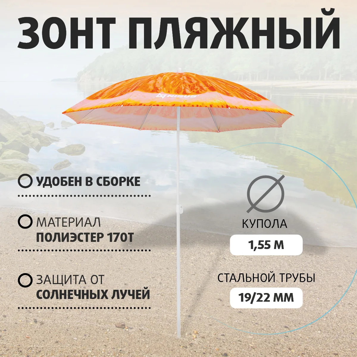 Отзывы о Зонт пляжный d 1 8м с наклоном (19/22/170Т) NISUS | Спорт и развлечения