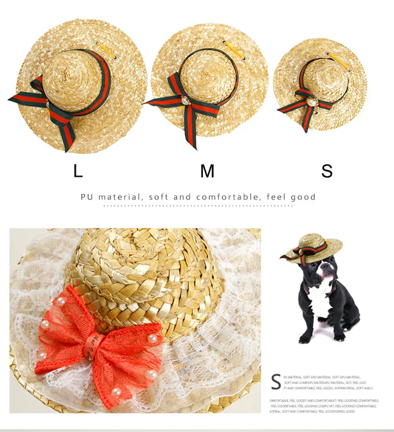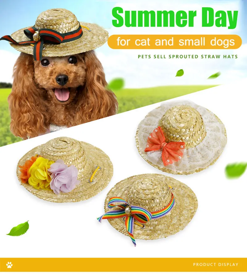 Отзывы о Плетеные соломенные шапки для собак уличные солнцезащитные регулируемые летние