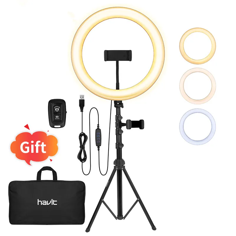 Отзывы о Кольцевой светильник Havit 12 "с подставкой для штатива (19"-65 ") и регулируемым
