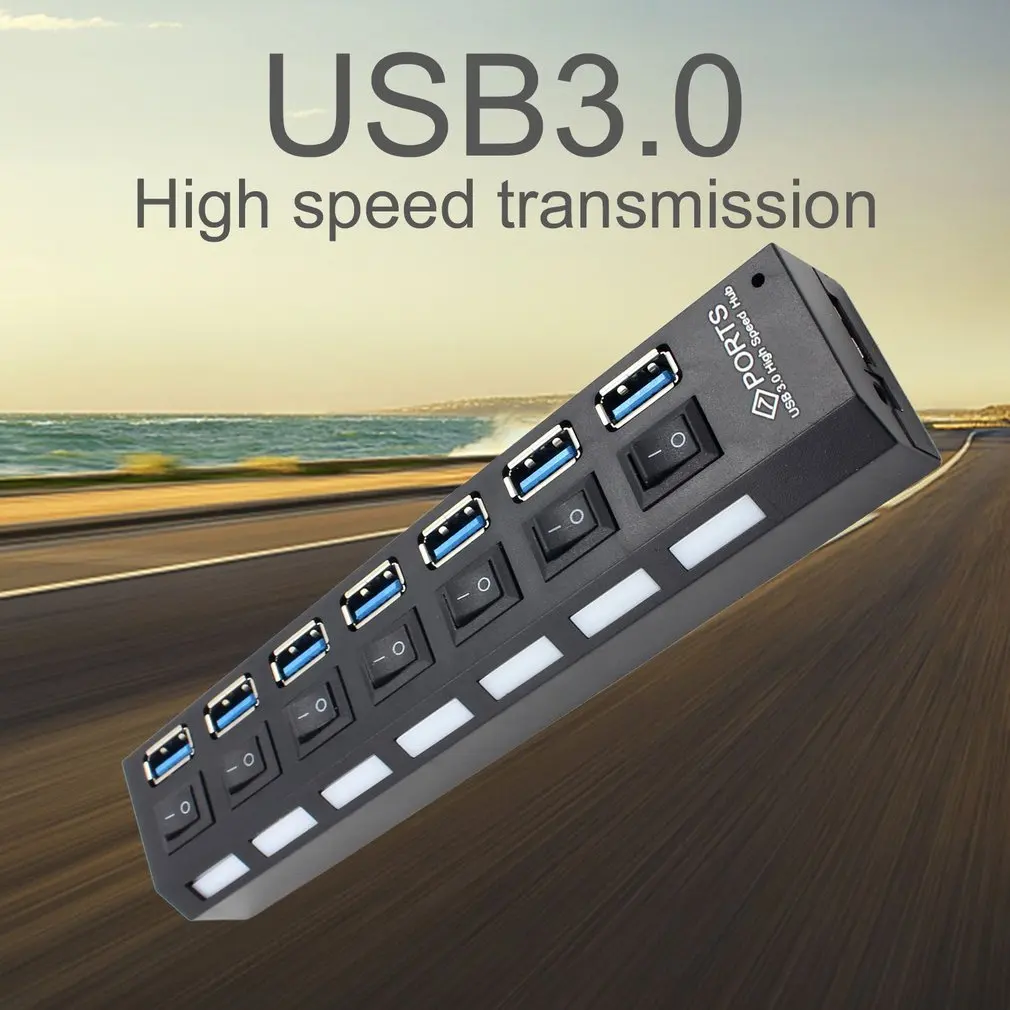 Usb-хаб 3,0 Супер скорость 5 Гбит/с 7 портов USB 3,0 концентратор usb-разветвитель с переключателем ВКЛ/ВЫКЛ Platooninsert для компьютерного периферийного оборудования