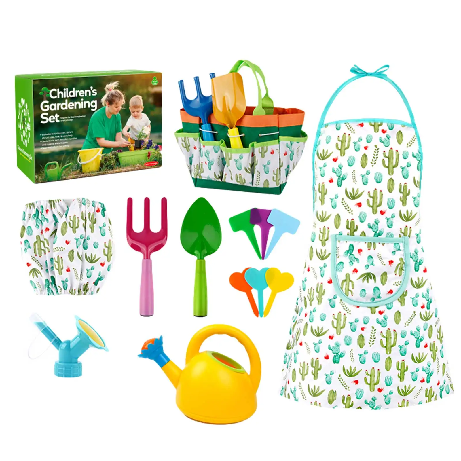 Точки пули:1. Все-в-одном садовые инструменты: Этот набор включает в себя лейки, перчатки, лопату, грабли, мастерок, мешок, фартук, ручной опрыскиватель и т. Д. Дети могут начать сажать настоящие растения, изучать науку и естественные знания.