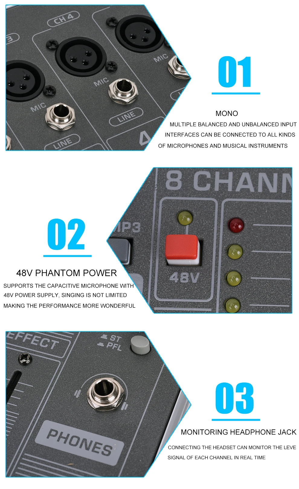 Отзывы о SAYI XU08 Профессиональный 48 В фантомное питание 8 каналов DJ Полетный бокс микшер
