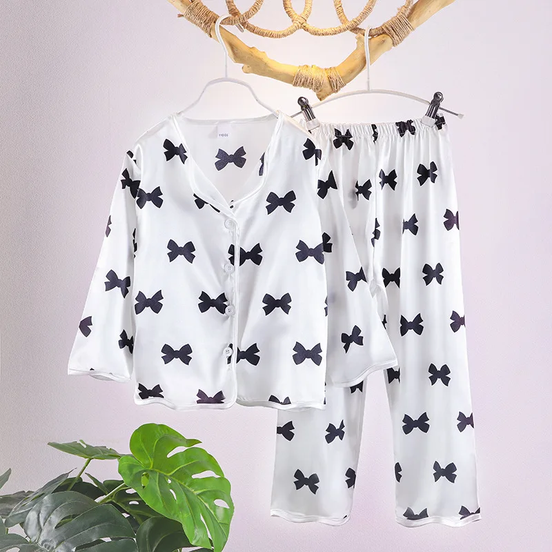Отзывы о Новые детские пижамы шелковые атласные топы штаны весенне-летняя одежда для сна