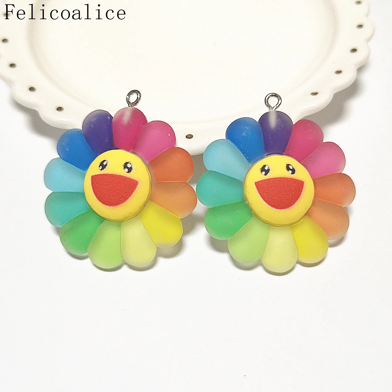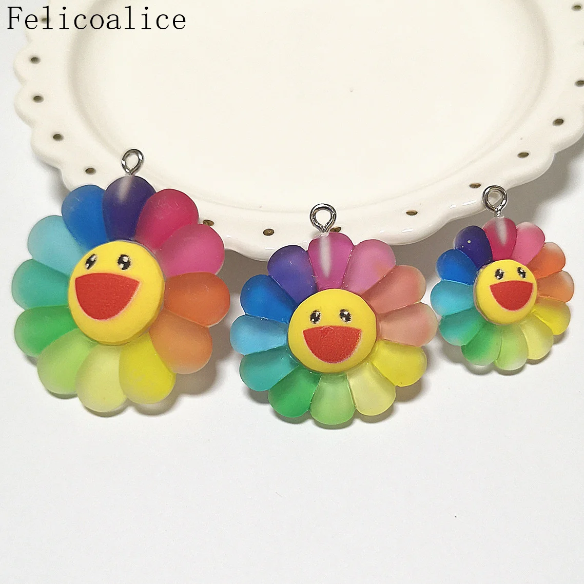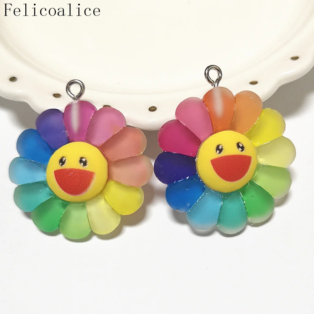 8 шт. подвески из смолы со смайликом и подсолнухами, подвеска для поделок ручной работы, чехол для телефона, украшение, цветы, изготовление ювелирных изделий