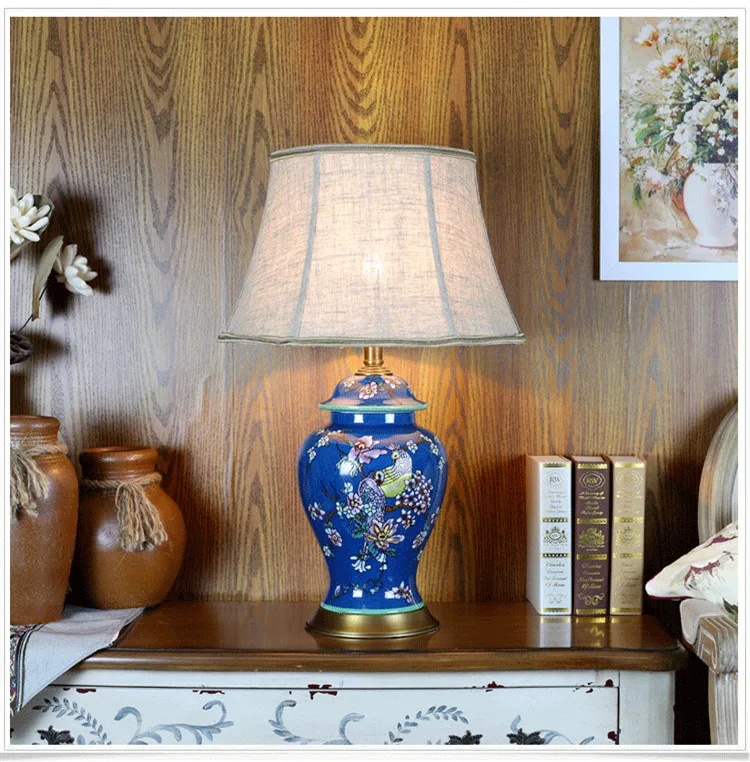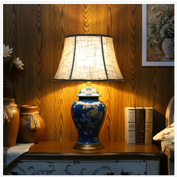 Отзывы о Современные европейские голубой Керамика настольная лампа ручная роспись в виде