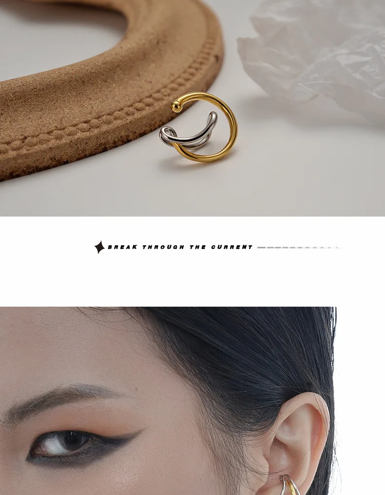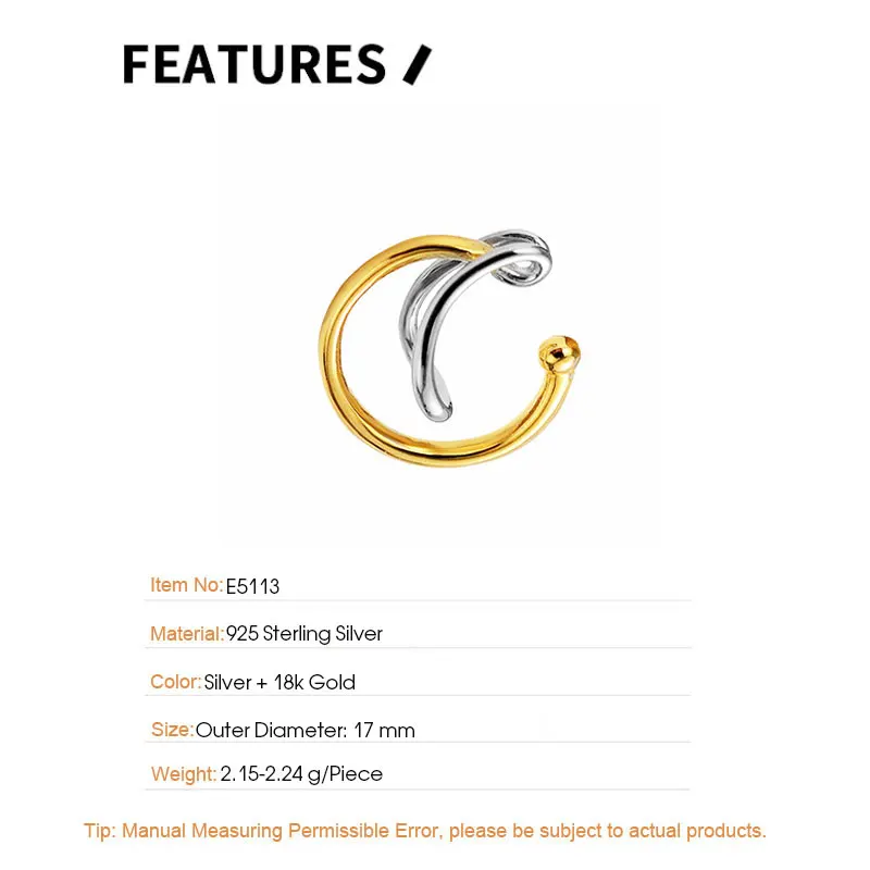 Тип Украшения: F.I.N.S 1 шт. уникальный дизайн S925 Стерлинговое Серебро геометрический круглый зажим для ушей без пирсинга полый контрастный цвет украшения для ушного хряща