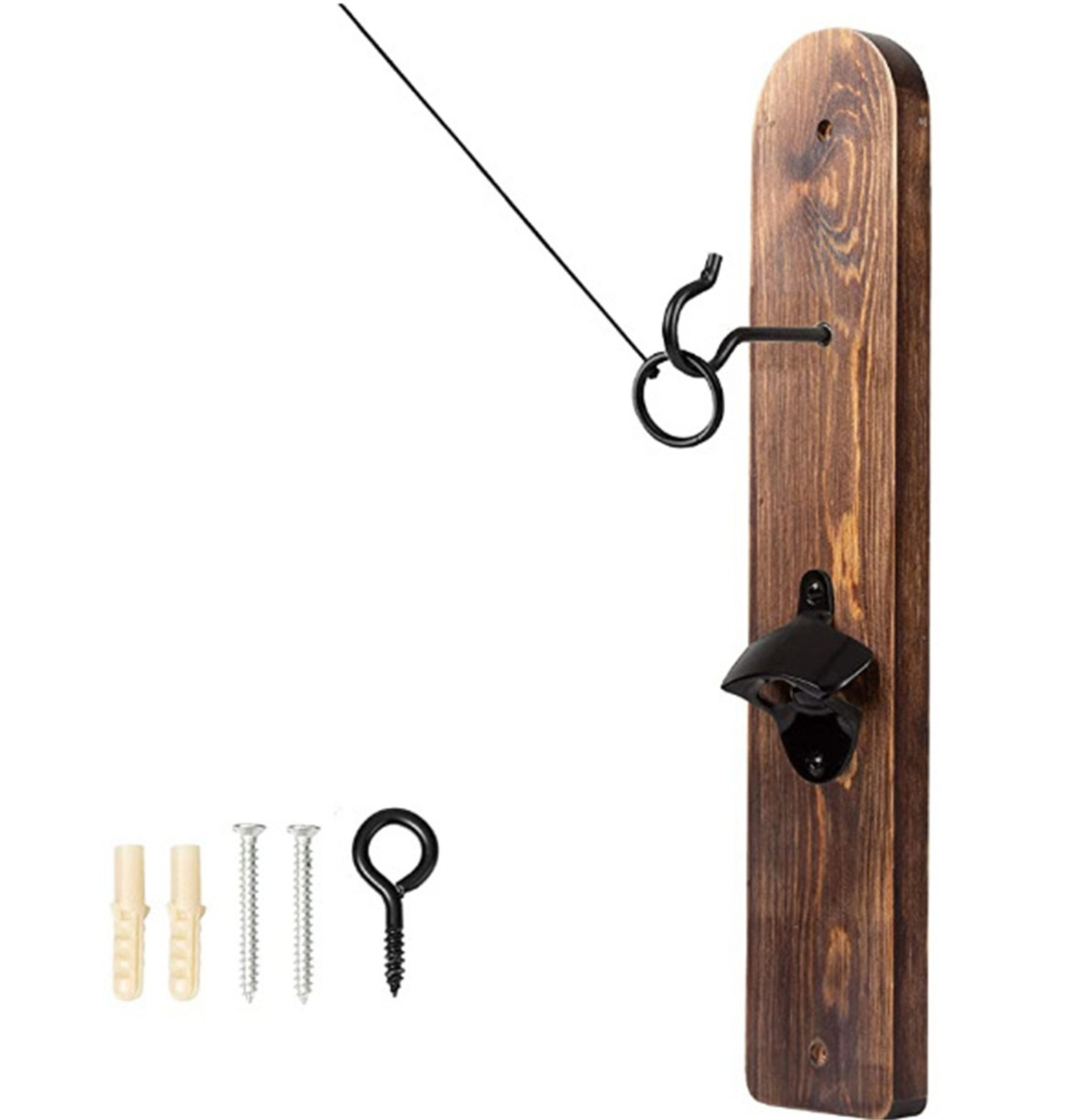 - 1) закрутите крюк в центр отверстия доски.