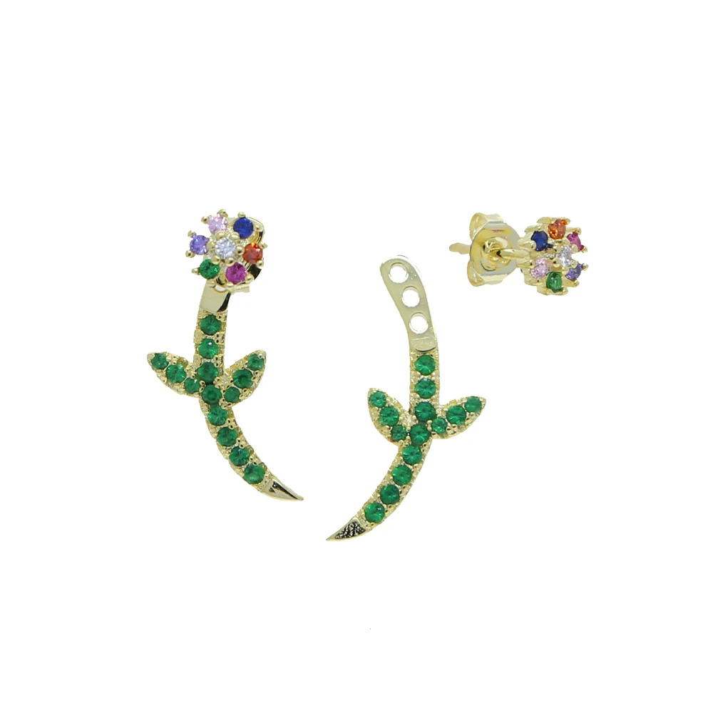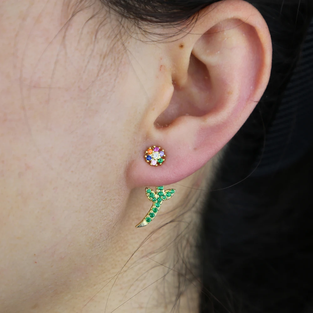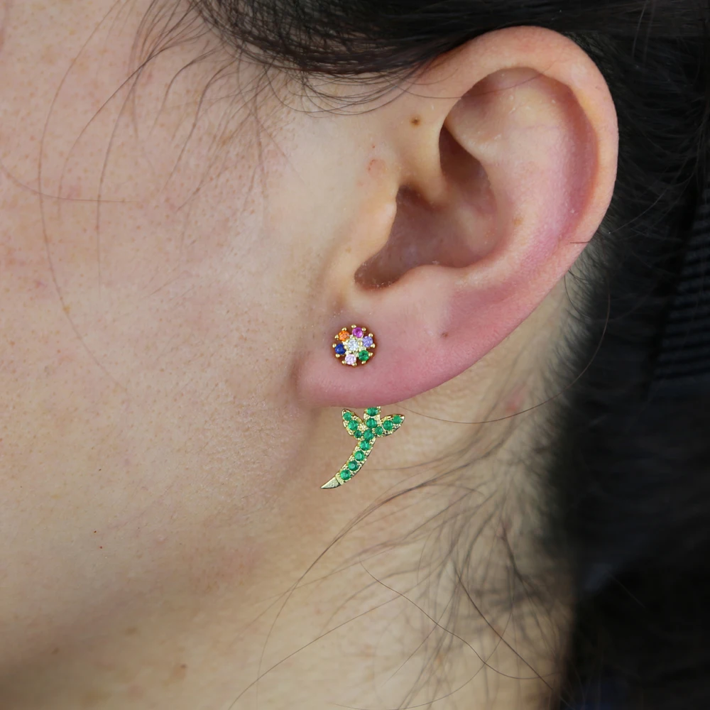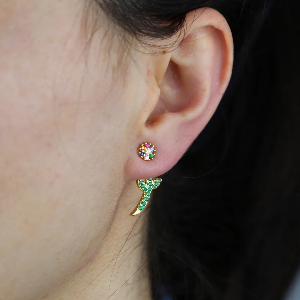 Акция 2021 весна лето новый зеленый Радуга CZ цветок Золотая Сережка-гвоздик цвет Двусторонняя бижутерия