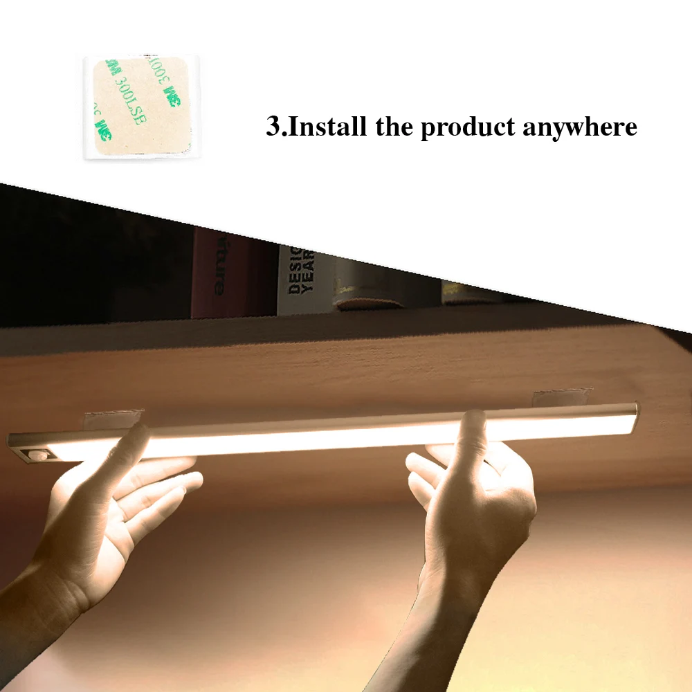 20/40 см движения PIR Сенсор Термальность светодиодная подсветка под шкаф USB Перезаряжаемые ультра тонкий Алюминий оболочки лампы ночного света