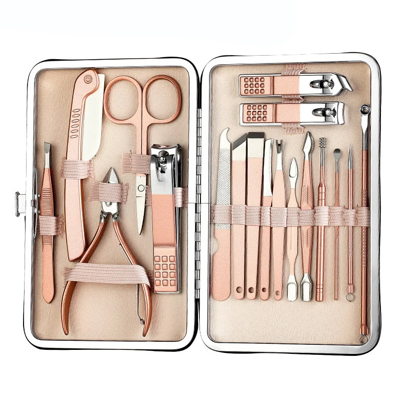 Розовое золото цвет 18 инструментов из нержавеющей стали маникюрный набор профессиональные кусачки для маникюра Набор педикюра кусачки для педикюра