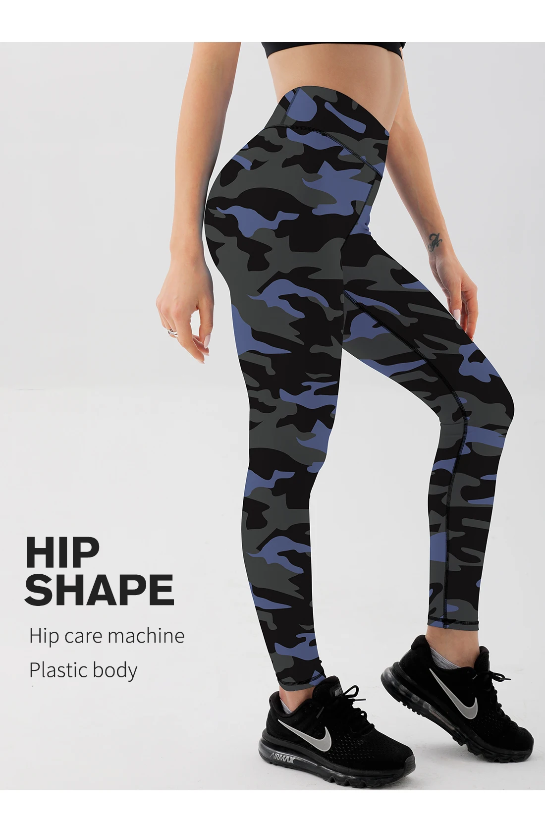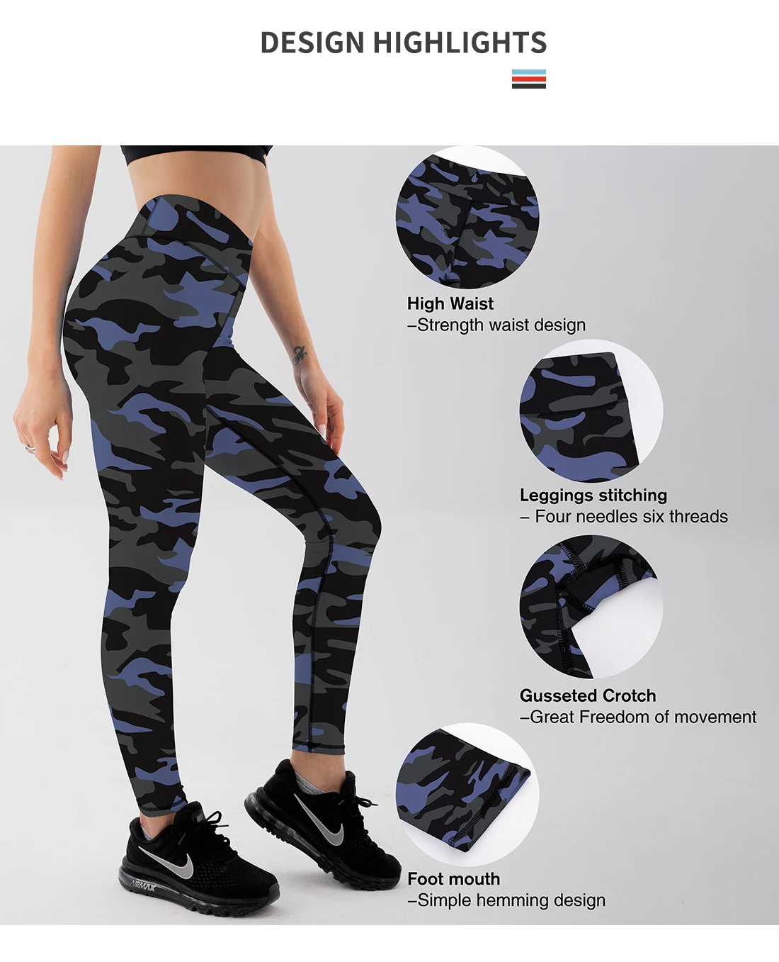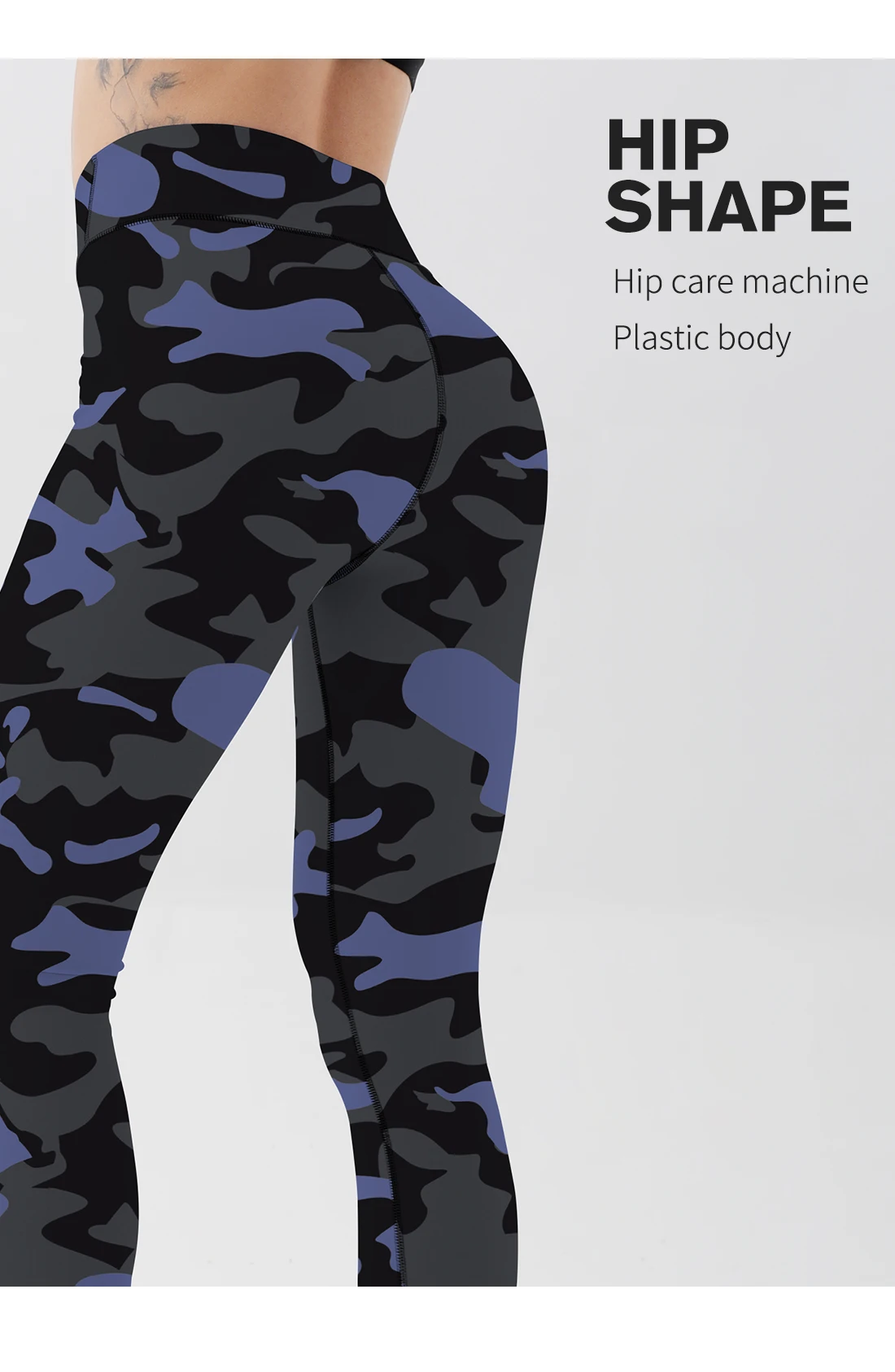 Отзывы о Синие камуфляжные леггинсы с высокой талией черные эффектом пуш-ап спортивные