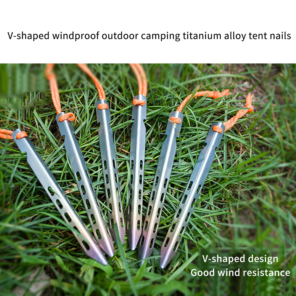Гвозди изготовлены из высококачественного титанового материала, который достаточно жесткий, что не так легко согнуть и сломать. Вы можете использовать его, чтобы надежно зафиксировать палатку и не беспокоиться о том, что она не имеет формы.