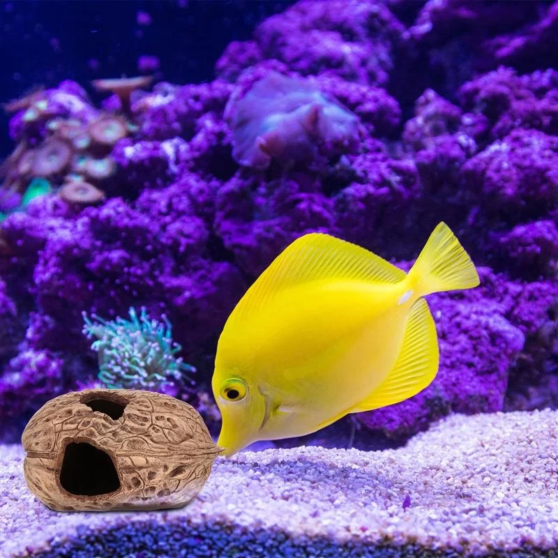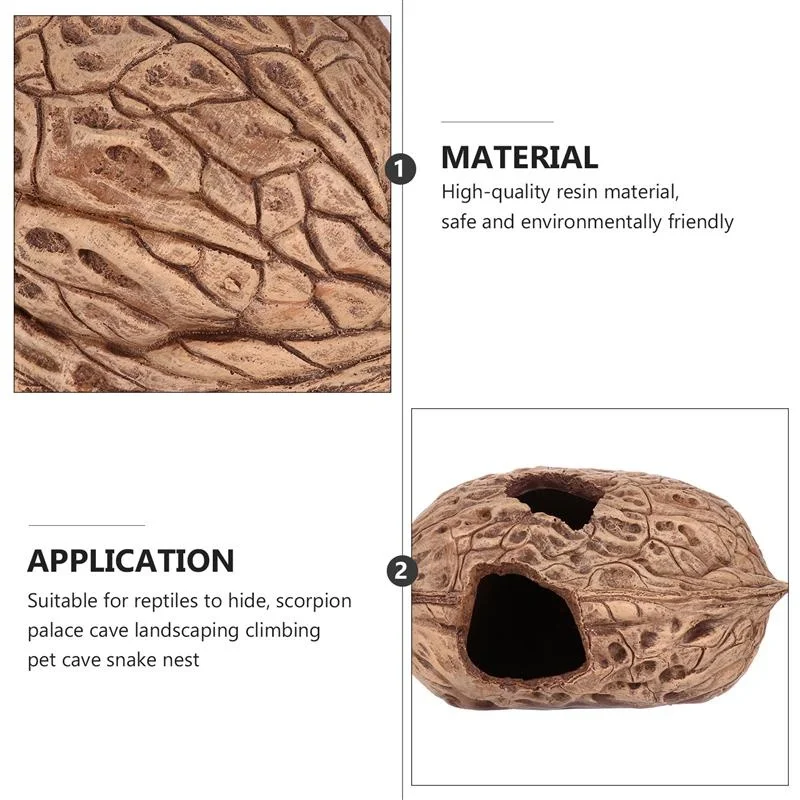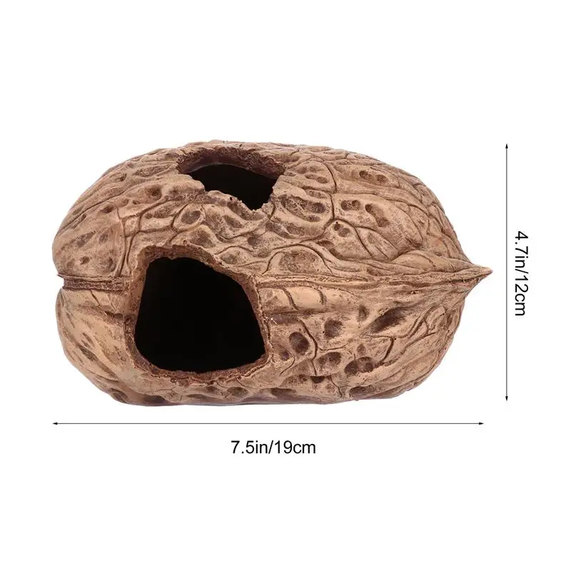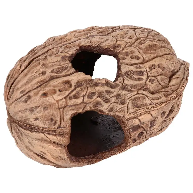 Это укрытие в форме грецкого ореха. Itis изготовлен из высококачественного полимерного материала, безопасный и прочный в использовании. Обеспечьте крышу и Терраса для ваших маленьких питомцев, идеально подходит для черепах, ящериц, пауков и других рептилий.Особенности