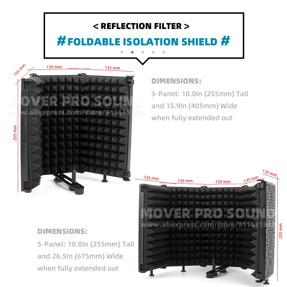 3 и 5 секций панелей опционально Абсорбирующая пенная изоляция ветроотражатель лобовое стекло складной шумопоглощающая насадка-губка для микрофона стенда для студийной записи микрофонный отражающий фильтр для записи защита от ветра