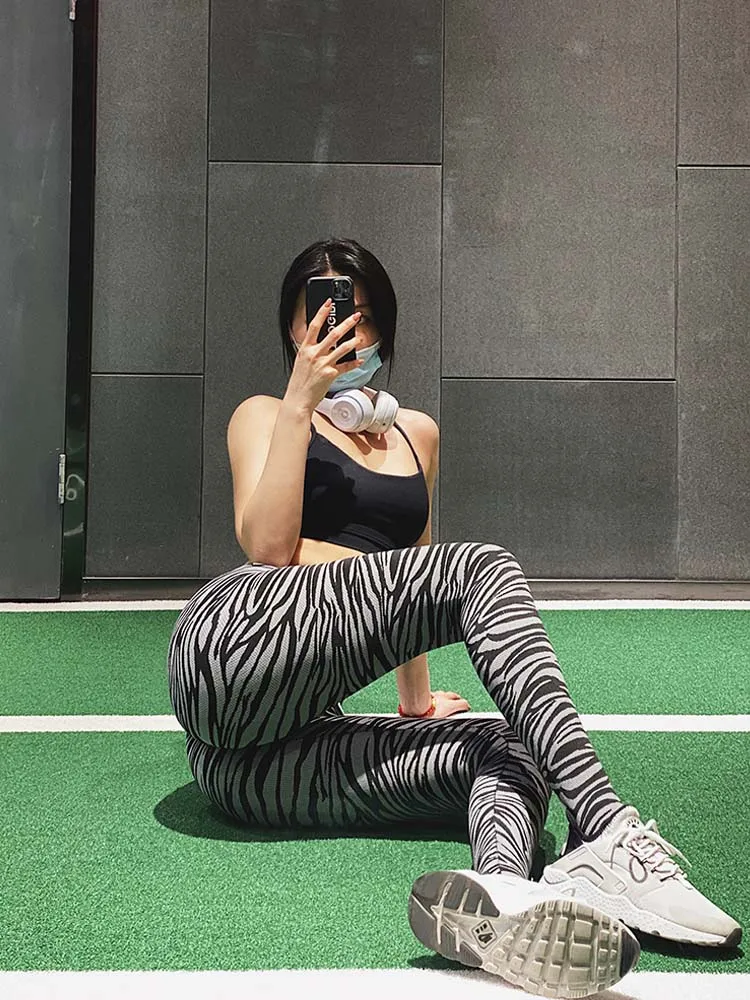 Леггинсы для йоги с принтом зебры/леопарда