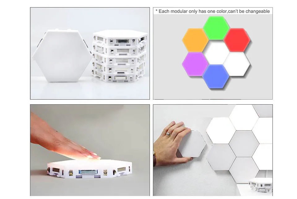 【Модульный сенсорный светильник ing】это модульный сенсорный настенный светильник. Используйте шестигранную дискету для создания любой структуры, чтобы удовлетворить ваши потребности, затем включите и выключите, прикоснувшись к ней.