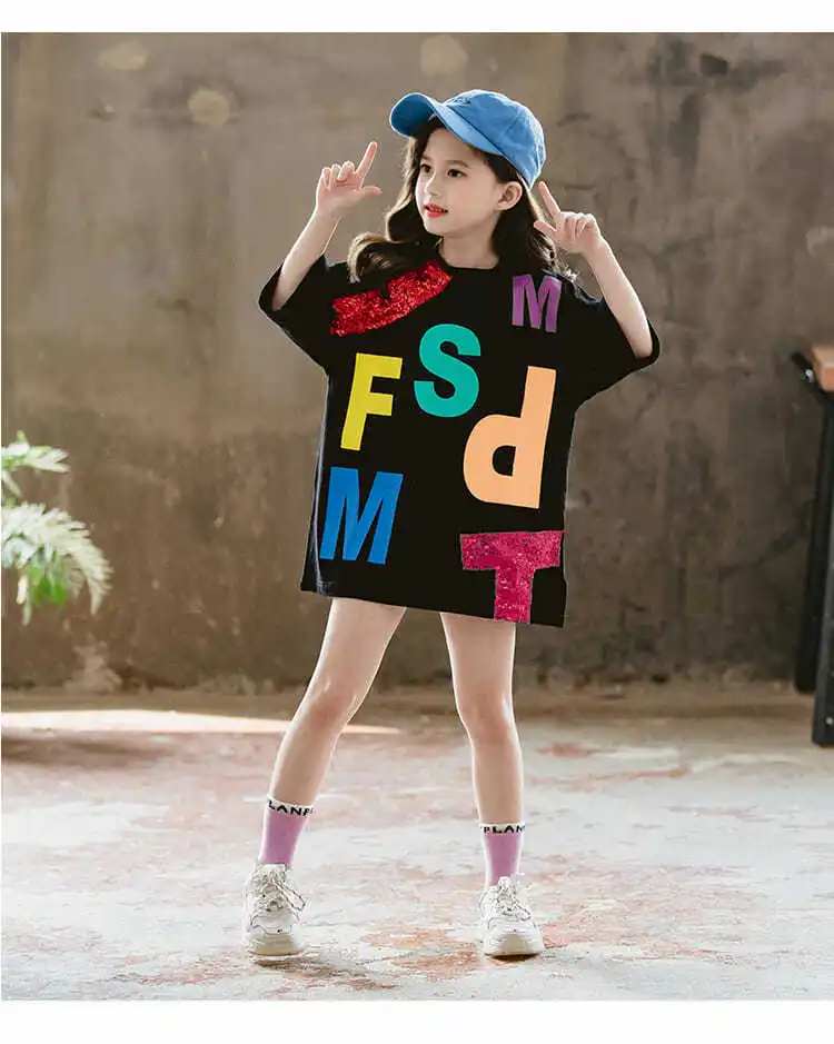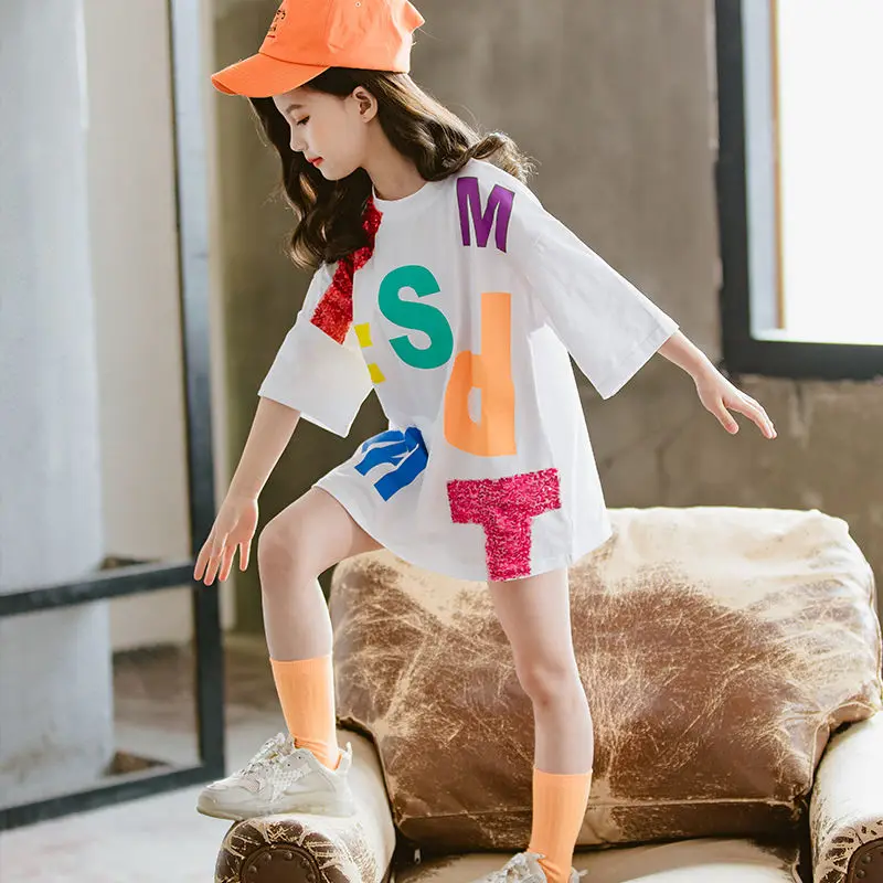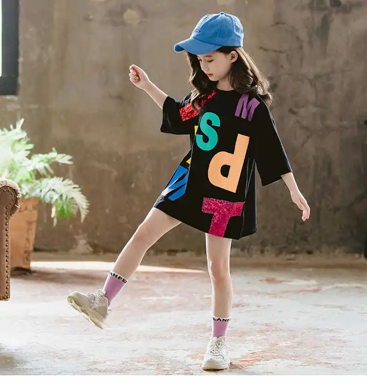 2021 детские длинные футболки с буквенным принтом летние топы, одежда с короткими рукавами детские футболки, платье для девочек 8, 12, 11, 13 лет, одежда для подростков