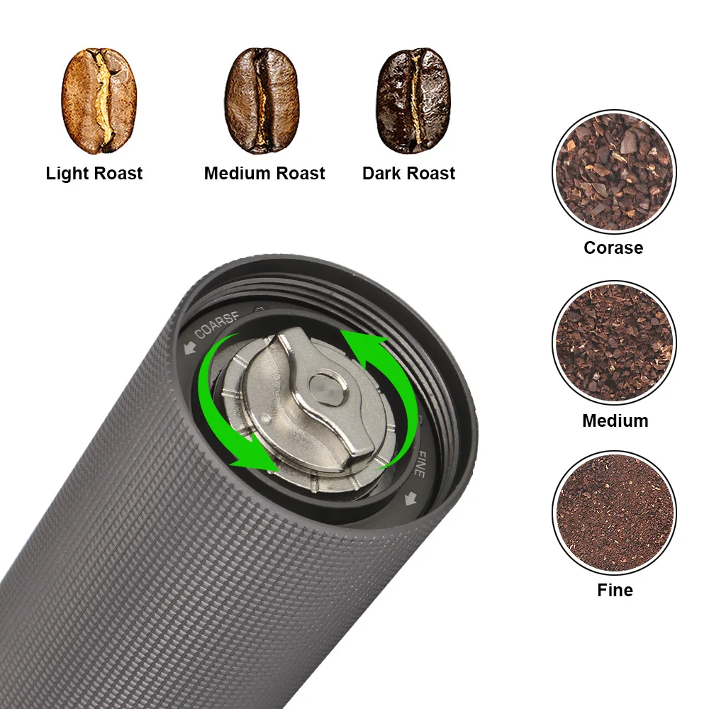 - Предпочтительный размер шлифовки: Встроенная регулируемая ручка для измельчения гарантирует, что вы будете иметь точный контроль над шероховатостью вашего залить, капать, холодного пивоварения, перколатор, эспрессо.