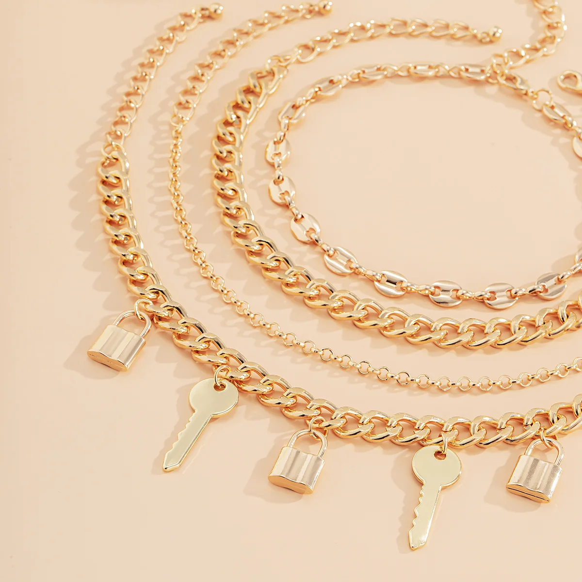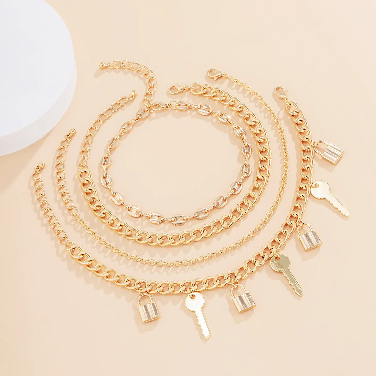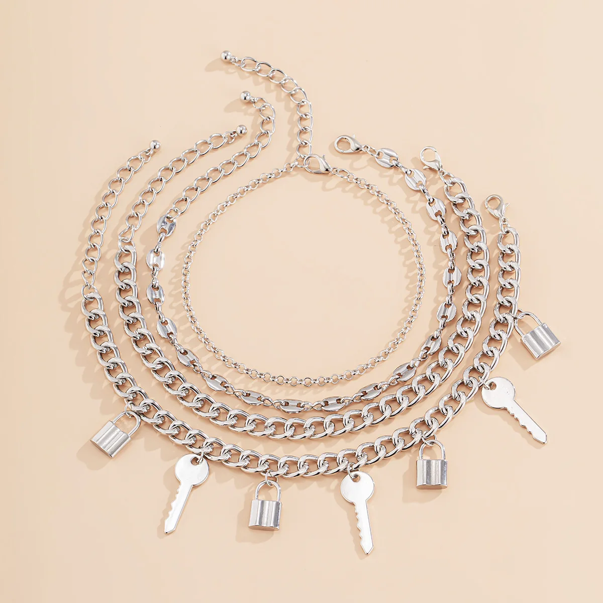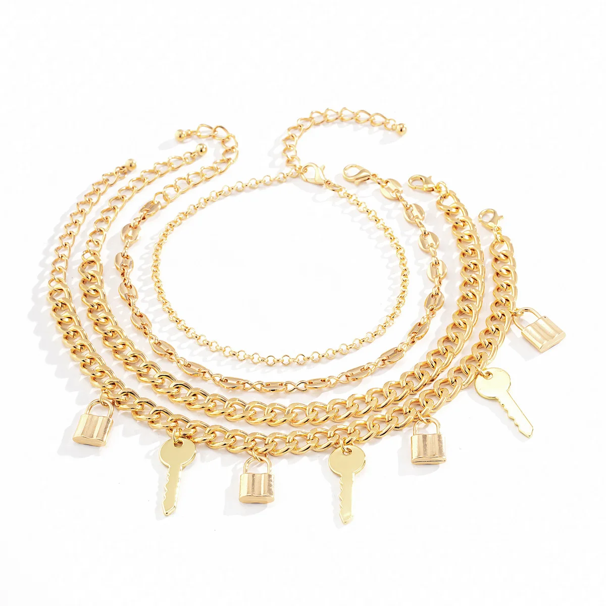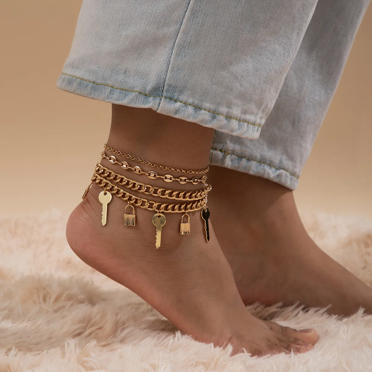 Тип Украшения: J.Shine; 4 шт./компл.; Подвески с замком для ключей; Очаровательный браслет на щиколотке для женщин; Летние босоножки с кубинской цепочкой; Стильные украшения для ног