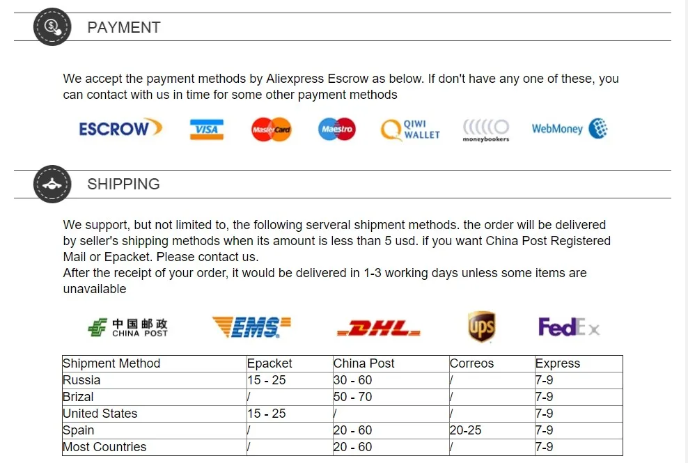 Для оптовой продажи: мы предлагаем скидку и бесплатную доставку экспресс-почтой, которая занимает 3-8 дней.