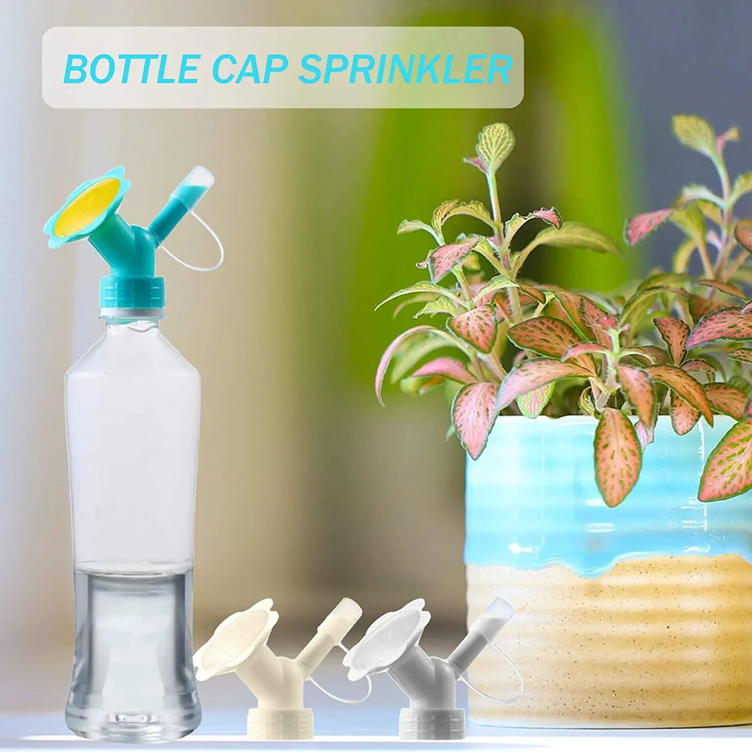 Наша растительная двойная насадка на бутылки проста в использовании, затяните их ртом бутылки для воды и аккуратно нажмите ее вручную, чтобы поливать маленькие растения в горшке без необходимости покупать другие лейки, экономит ваше время и энергию