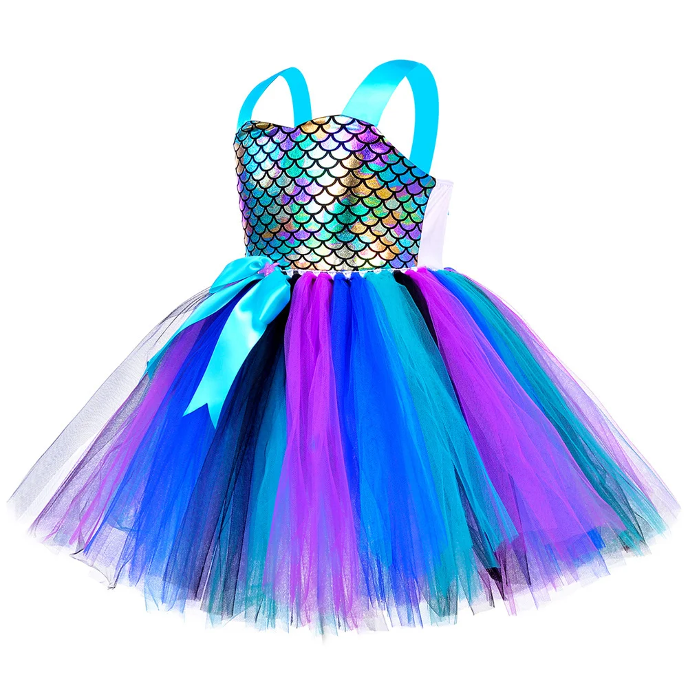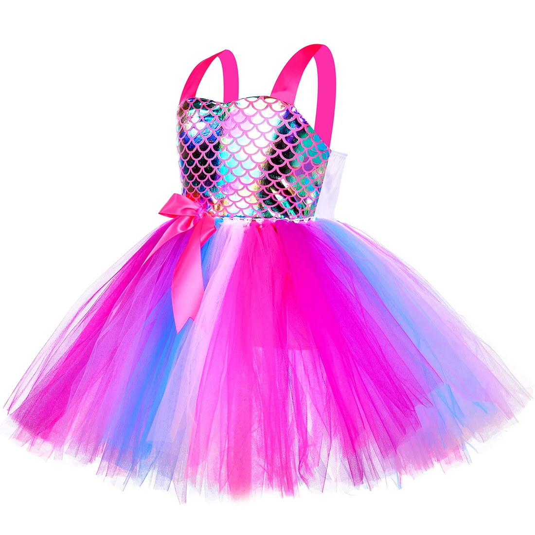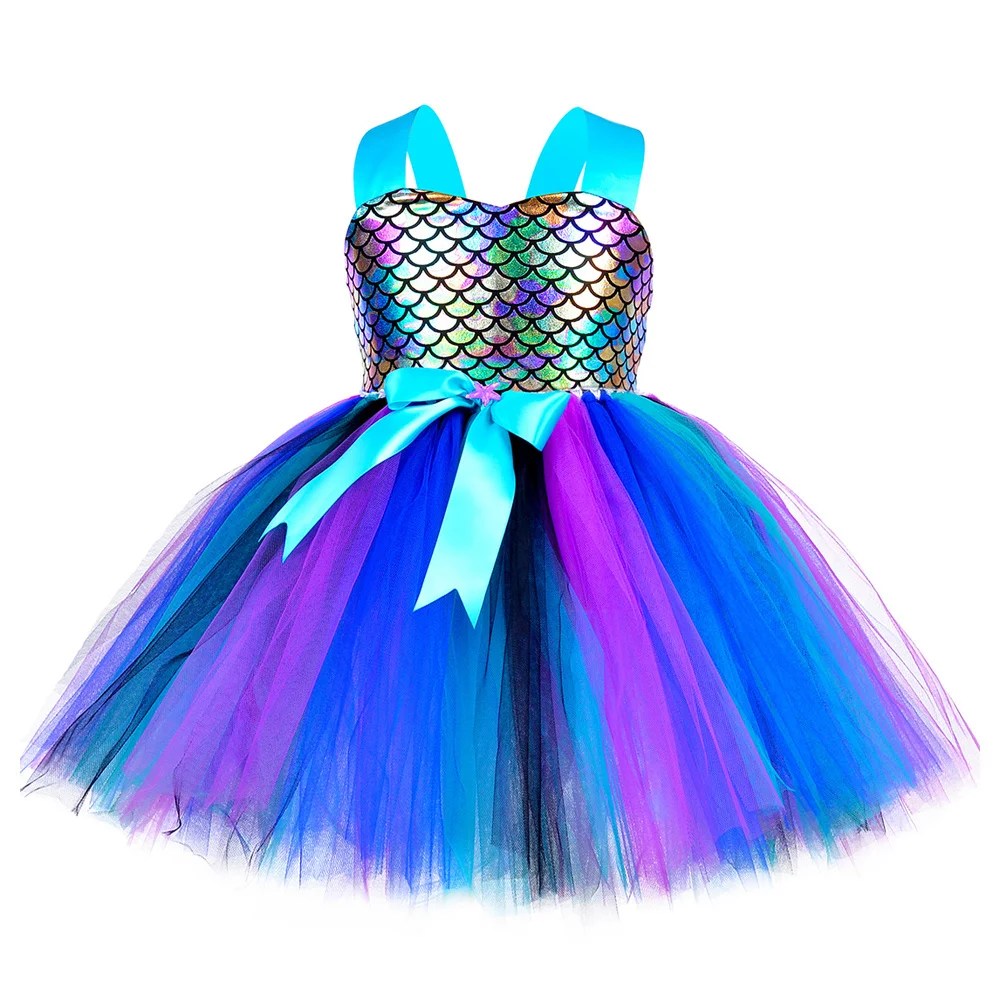 Маленькая юбка-пачка в стиле Русалочки, платье для девочек, платья принцессы для русалки, костюмы для вечеринки в честь Дня Рождения, детская одежда на Рождество, Новый год