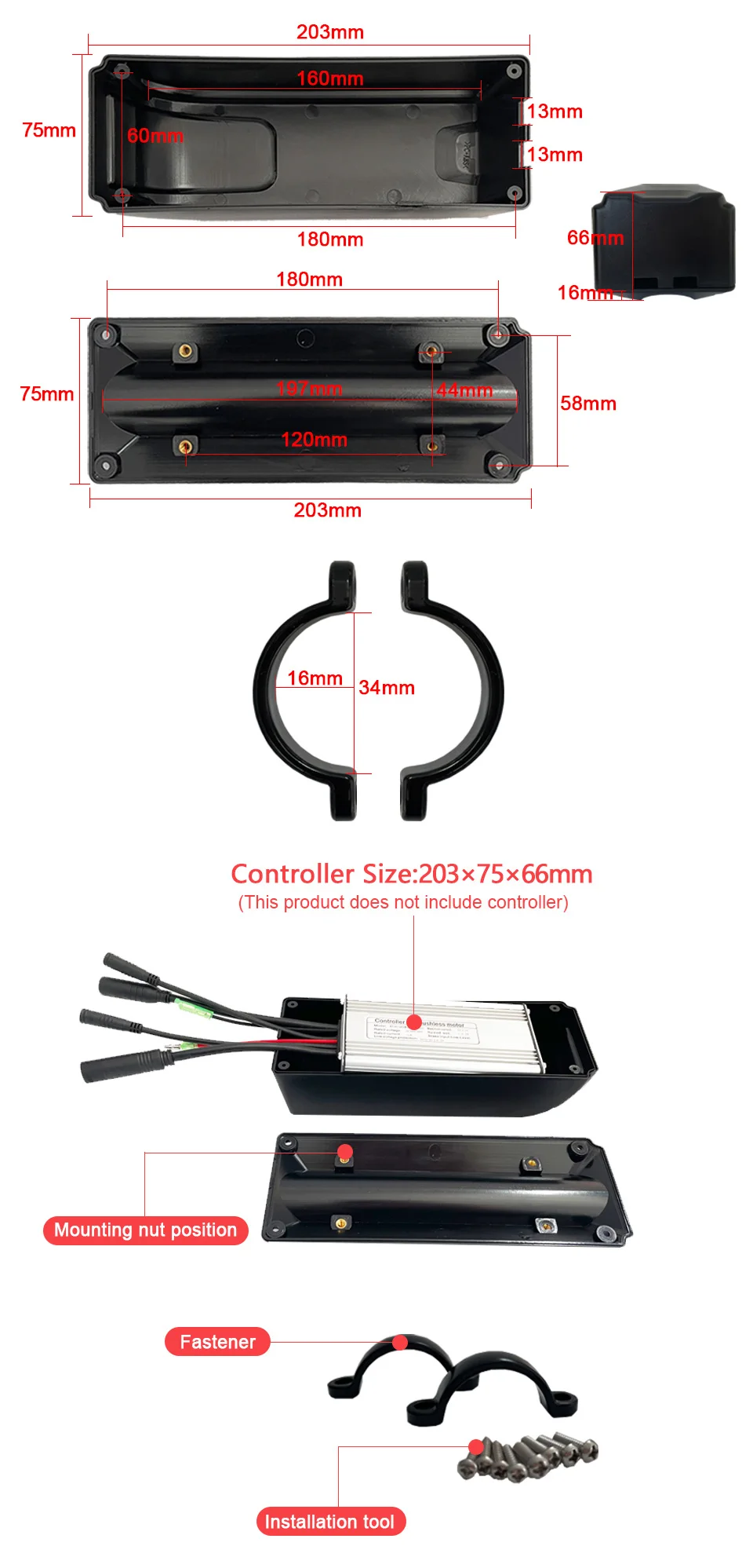 ● Простота установки:Комплект коробки контроллера для электровелосипеда снабжен винтами и крепежным зажимом, другие инструменты не требуются, очень просты в установке и эксплуатации.