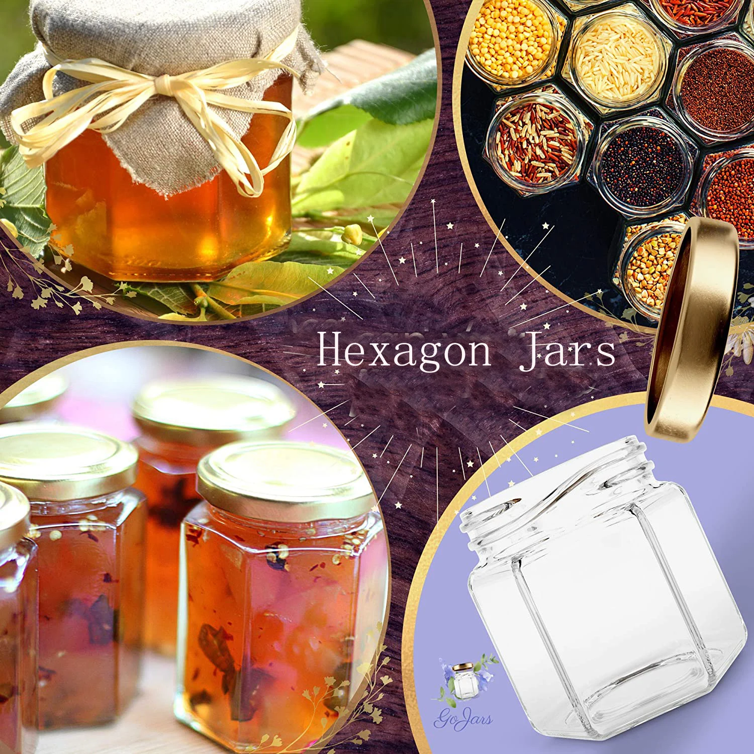 ✔️ Высокое качество и толщина: шестигранные стеклянные банки с безопасными для пищевых продуктов, коррозионностойкими золотыми крышками
