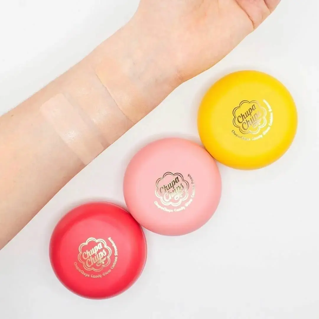 Тональная основа-кушон SPF 50+ PA +++ (Chupa Chups Candy Glow Cushion SPF 50+ PA +++) Высокопигментированный кушон выравнивает тон и корректирует текстуру кожи.Тонкий слой средства перекрывает покраснения, следы от прыщиков и пигментацию. Не подчеркивает шелушения, не трескается и не стекает в течение дня. Даёт естественный сияющий финиш без эффекта маски. Содержит максимальный SPF 50+ PA++++, ниацинамид, гиалуроновую кислоту, аденозин, чтобы ухаживать за кожей весь день.