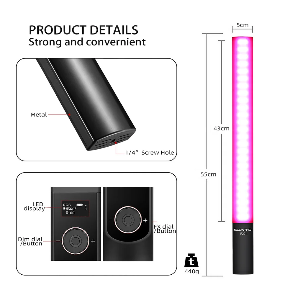 Отзывы о Ручной Светильник SOONPHO P20II 2500-8500K RGB цветной со светодиодной палочкой для