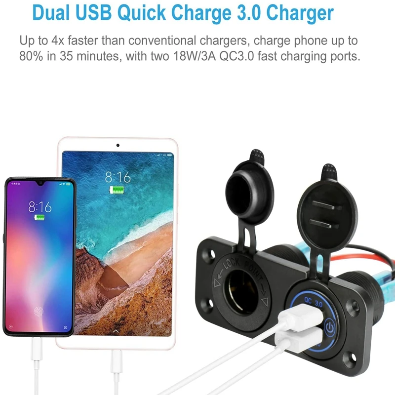 Широкое применение: идеально подходит для любых устройств с питанием от автомобиля постоянного тока 12 В/24 В. Такие как мотоцикл, лодка, морской, ATV, RV и многое другое.