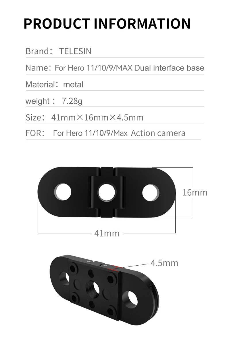 Адаптер для крепления головки штатива TELESIN 1/4 ''для GoPro Hero11 10 9 Hero 8 GoPro Max крепление для экшн-камеры штатив монопод