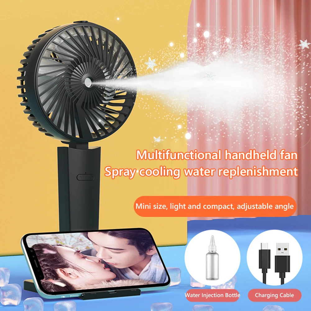 Mini size, light and compact, adjustable angle. Ultra-low noise, small and thin blades, reducing wind noise. With LED lamp, lighting design. Third gear adjustable wind speed, cooler experience. Super endurance. Built-in 1200 mAh large-capacity battery, enjoy cool and last longer. The bottom of the fan can be pulled out as a mobile phone bracket, which is practical. Can be used as humidifier, spray and replenish water. Removable base, can be widely used, multifunctional. 5 Colors are optional, full of fashion sense and Korean cartoon style. Specification: Model: Q68 Power mode: USB Product features: water supply fan Noise: below 36dB Rated voltage: 5V Rated power: 4W Applicable area: desktop/computer front Air supply mode: turn page Wind speed gear: 3 gear Support charging: Yes Speed control gear: 3 gear Shake head way: shake head up and down Battery capacity: 1200mAh Color: Black, Blue, Green, Pink, White Size: 245x105x70mm Weight: 121g Note: Due to the different monitor and light effect, the actual color of the item might be slightly different from the color showed on the pictures. Thank you! Please allow 1-3cm measuring deviation due to manual measurement. ![]() 1 X Fan + Base 1 X Charging Cable 1 X Water Injection Bottle 1 X Instruction